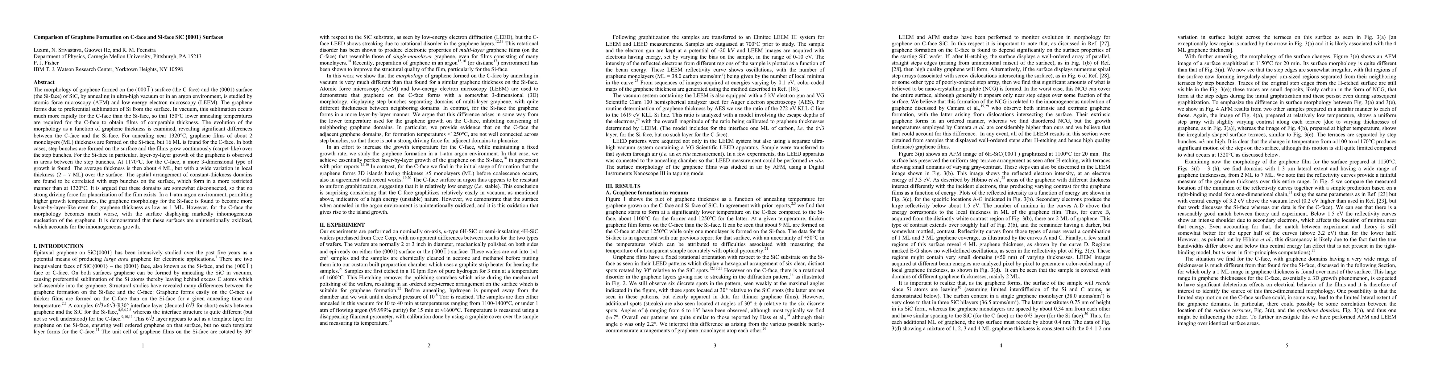 This study compares graphene formation on SiC's C-face and Si-face via annealing, revealing that the C-face requires lower temperatures for similar graphene thickness due to faster Si sublimation. The Si-face shows layer-by-layer growth between step bunches, while the C-face exhibits more 3-dimensional growth with thicker but variable films. In argon, the Si-face improves in layer-by-layer growth, but the C-face's graphene morphology worsens due to unintentional oxidation.