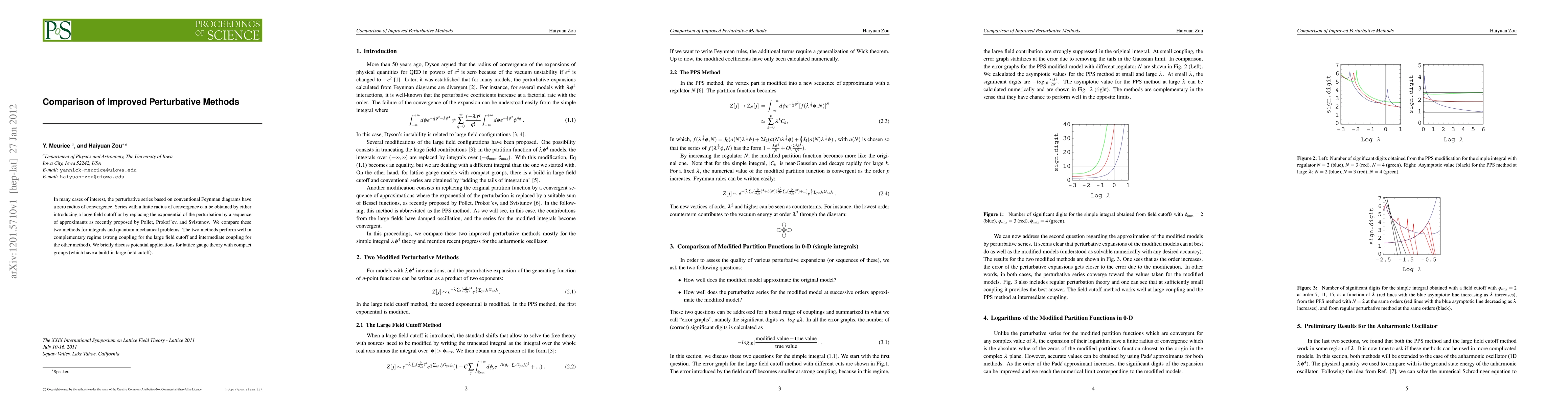 In many cases of interest, the perturbative series based on conventional Feynman diagrams have a zero radius of convergence. Series with a finite radius of convergence can be obtained by either introducing a large field cutoff or by replacing the exponential of the perturbation by a sequence of approximants as recently proposed by Pollet, Prokof'ev, and Svistunov. We compare these two methods for integrals and quantum mechanical problems. The two methods perform well in complementary regime (strong coupling for the large field cutoff and intermediate coupling for the other method). We briefly discuss potential applications for lattice gauge theory with compact groups (which have a build-in large field cutoff).