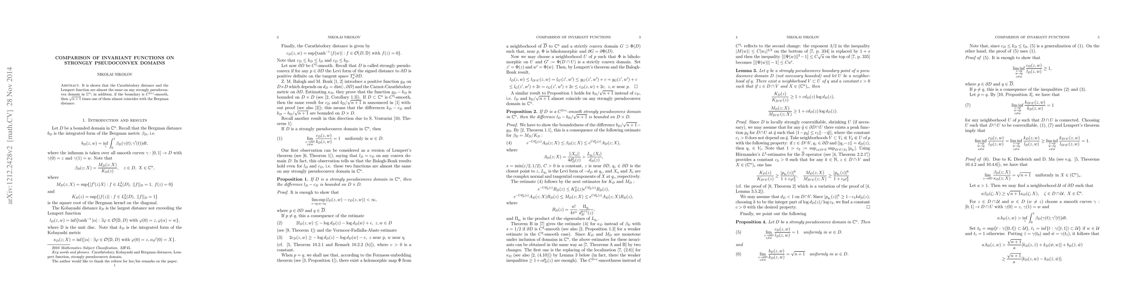 This paper demonstrates that the Carathéodory distance and the Lempert function are nearly identical on strongly pseudoconvex domains in $\mathbb{C}^n$, and if the boundary is $C^{2+\epsilon}$-smooth, $\sqrt{n+1}$ times one of these functions closely approximates the Bergman distance.