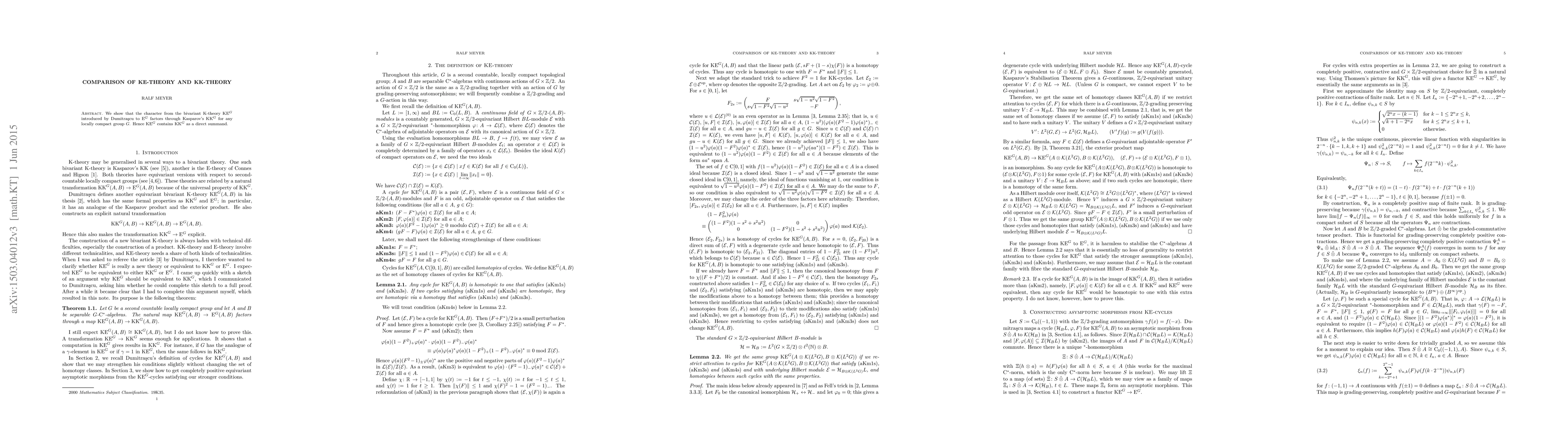 We show that the character from the bivariant K-theory KE^G introduced by Dumitrascu to E^G factors through Kasparov's KK^G for any locally compact group G. Hence KE^G contains KK^G as a direct summand.