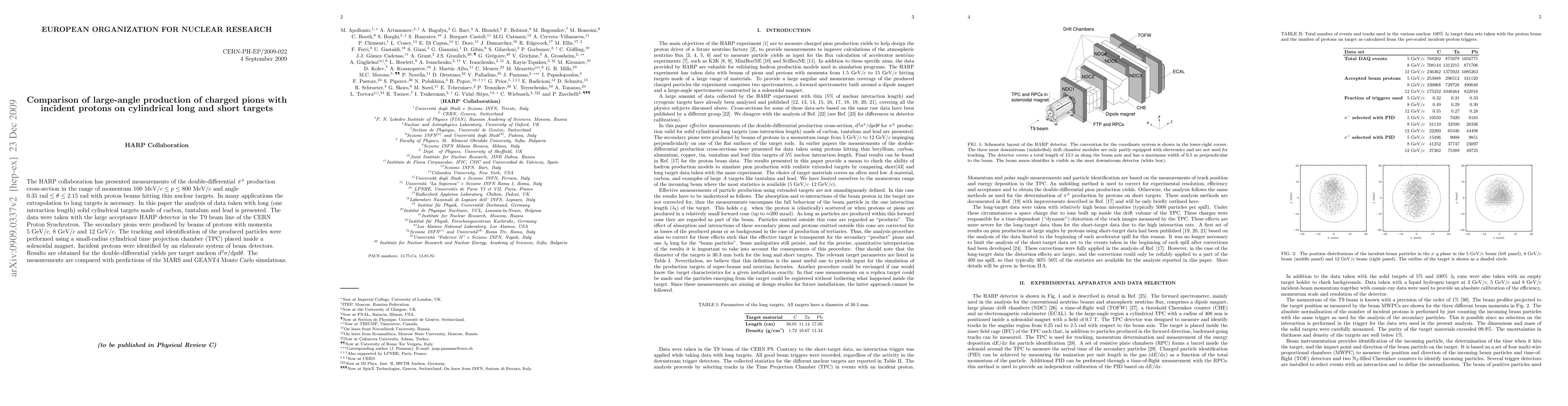 The HARP collaboration measured the double-differential cross-section for charged pion production in proton-target interactions, comparing results from long and short cylindrical targets. The findings were compared with MARS and GEANT4 simulations to validate the extrapolation to long targets.