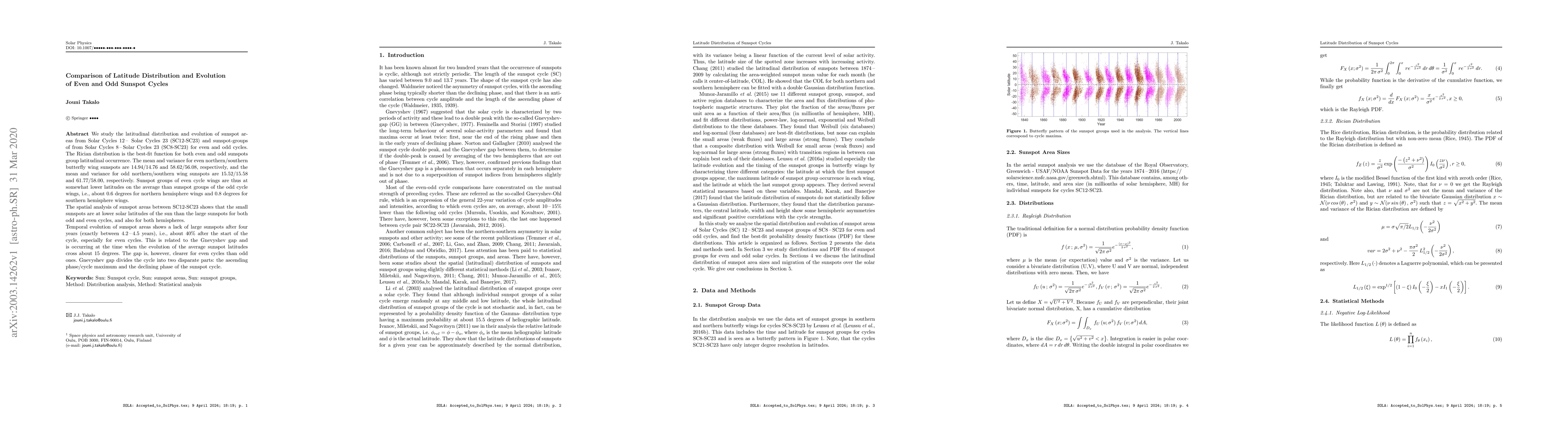 We study the latitudinal distribution and evolution of sunspot areas from Solar Cycle 12 to Solar Cycle 23 (SC12-SC23) and sunspot-groups of from Solar Cycle 8 to Solar Cycle 23 (SC8-SC23) for even and odd cycles. The Rician distribution is the best-fit function for both even and odd sunspots group latitudinal occurrence. The mean and variance for even northern/southern butterfly wing sunspots are 14.94/14.76 and 58.62/56.08, respectively, and the mean and variance for odd northern/southern wing sunspots are 15.52/15.58 and 61.77/58.00, respectively. Sunspot groups of even cycle wings are thus at somewhat lower latitudes on the average than sunspot groups of the odd cycle wings, i.e., about 0.6 degrees for northern hemisphere wings and 0.8 degrees for southern hemisphere wings. The spatial analysis of sunspot areas between SC12-SC23 shows that the small sunspots are at lower solar latitudes of the sun than the large sunspots for both odd and even cycles, and also for both hemispheres. Temporal evolution of sunspot areas shows a lack of large sunspots after four years (exactly between 4.2-4.5 years), i.e., about 40\% after the start of the cycle, especially for even cycles. This is related to the Gnevyshev gap and is occurring at the time when the evolution of the average sunspot latitudes cross about 15 degrees. The gap is, however, clearer for even cycles than odd ones. Gnevyshev gap divides the cycle into two disparate parts: the ascending phase/cycle maximum and the declining phase of the sunspot cycle.