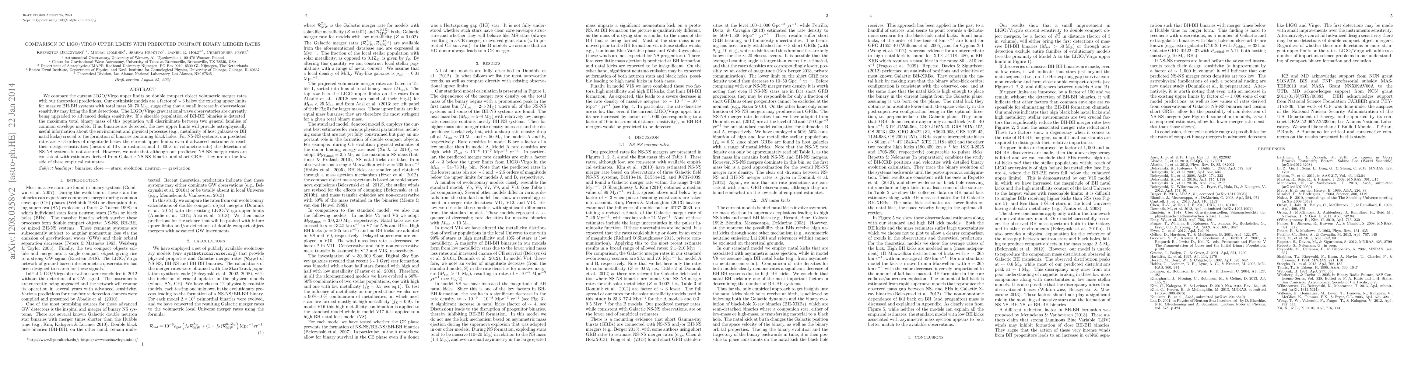 This paper compares LIGO/Virgo's upper limits on compact binary merger rates with theoretical predictions, finding that increased sensitivity may soon detect massive black hole mergers. For neutron star mergers, predicted rates remain significantly lower than current limits, though consistent with other estimates.