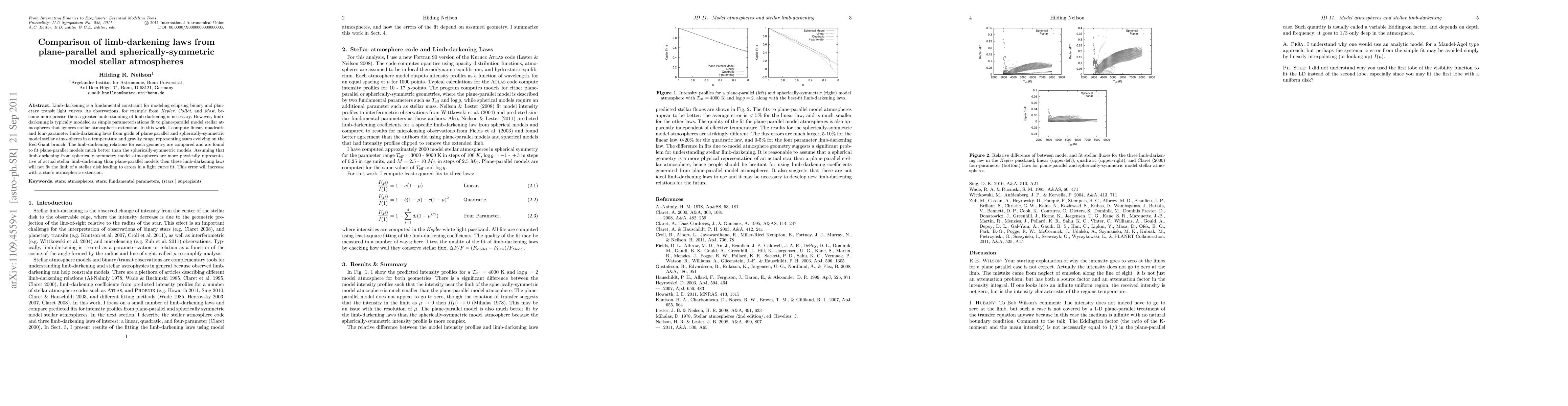 This paper compares limb-darkening laws derived from plane-parallel versus spherically-symmetric stellar atmospheres, finding that the former fits better. It warns that using these laws for stars with significant atmospheric extension could lead to errors in light curve models due to the physical misrepresentation of spherical models.