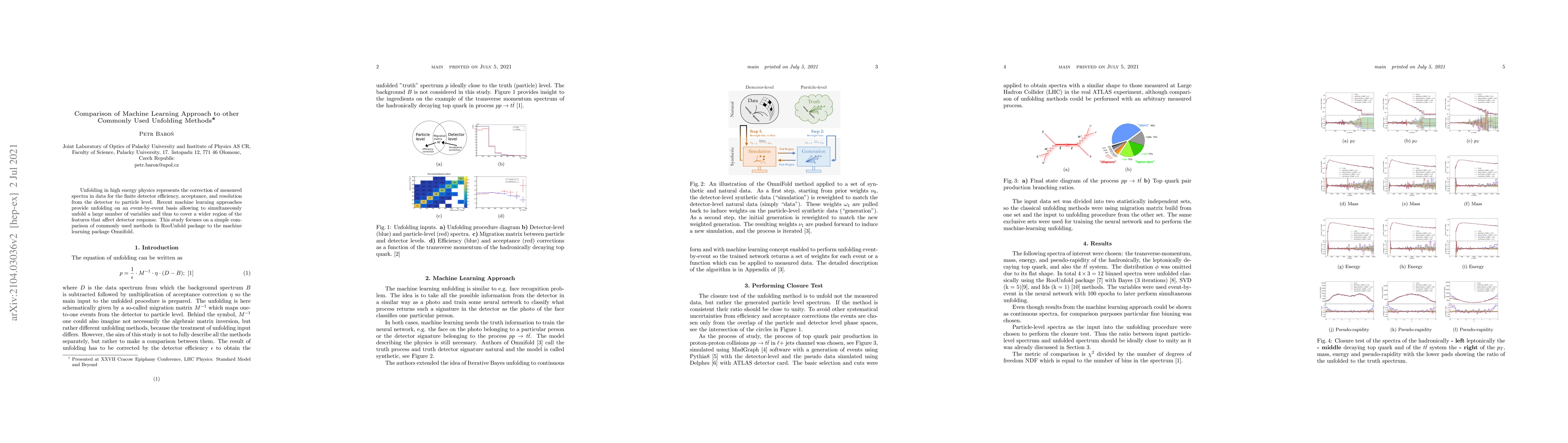 A study compares machine learning approach Omnifold with commonly used methods in RooUnfold package for unfolding high-energy physics data, finding Omnifold provides simultaneous unfolding of multiple variables on an event-by-event basis.