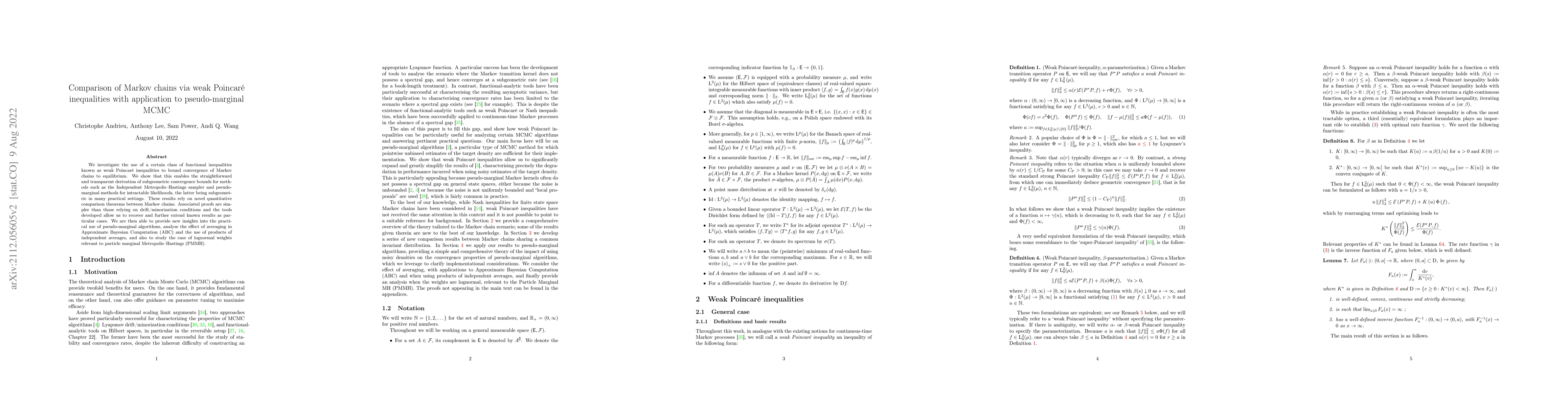 This paper explores the use of weak Poincaré inequalities to derive subgeometric convergence bounds for Markov chains, including the Independent Metropolis-Hastings and pseudo-marginal methods. The approach provides simpler proofs and new insights into the practical use of pseudo-marginal algorithms and Approximate Bayesian Computation.