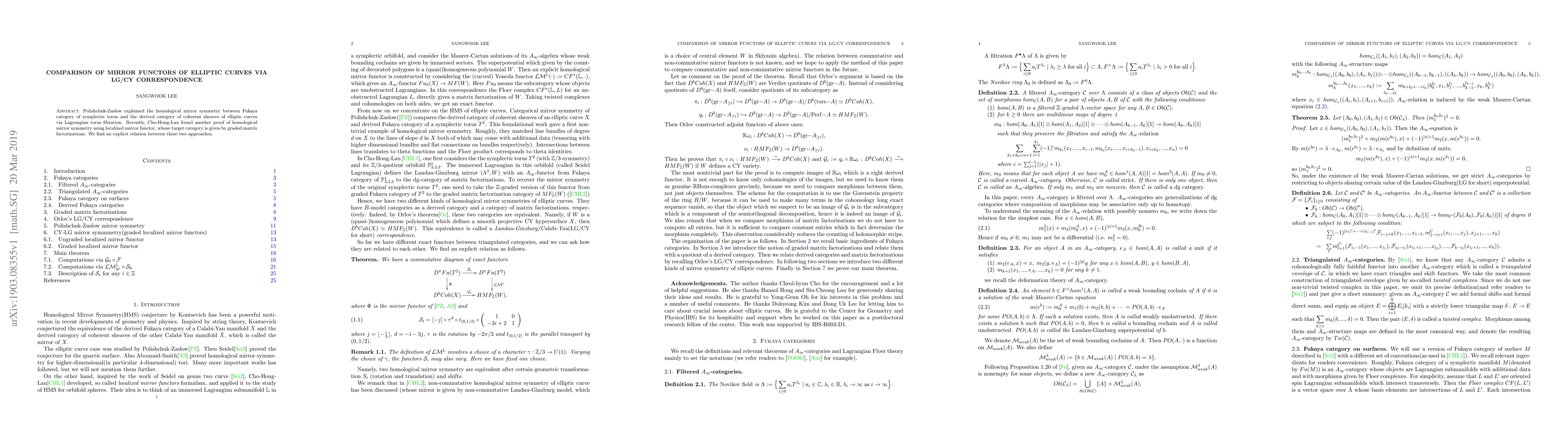 This paper explores the homological mirror symmetry between elliptic curves by comparing two different mirror functors: one based on the LG/CY correspondence and the other using localized mirror functors targeting graded matrix factorizations. It establishes an explicit relationship between these two approaches.
