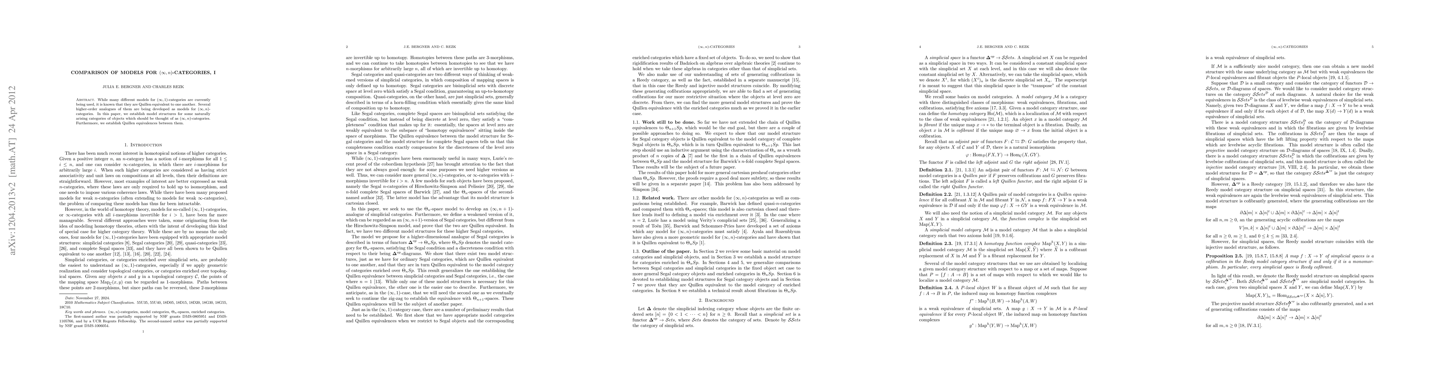 While many different models for $(\infty,1)$-categories are currently being used, it is known that they are Quillen equivalent to one another. Several higher-order analogues of them are being developed as models for $(\infty, n)$-categories. In this paper, we establish model structures for some naturally arising categories of objects which should be thought of as $(\infty,n)$-categories. Furthermore, we establish Quillen equivalences between them.