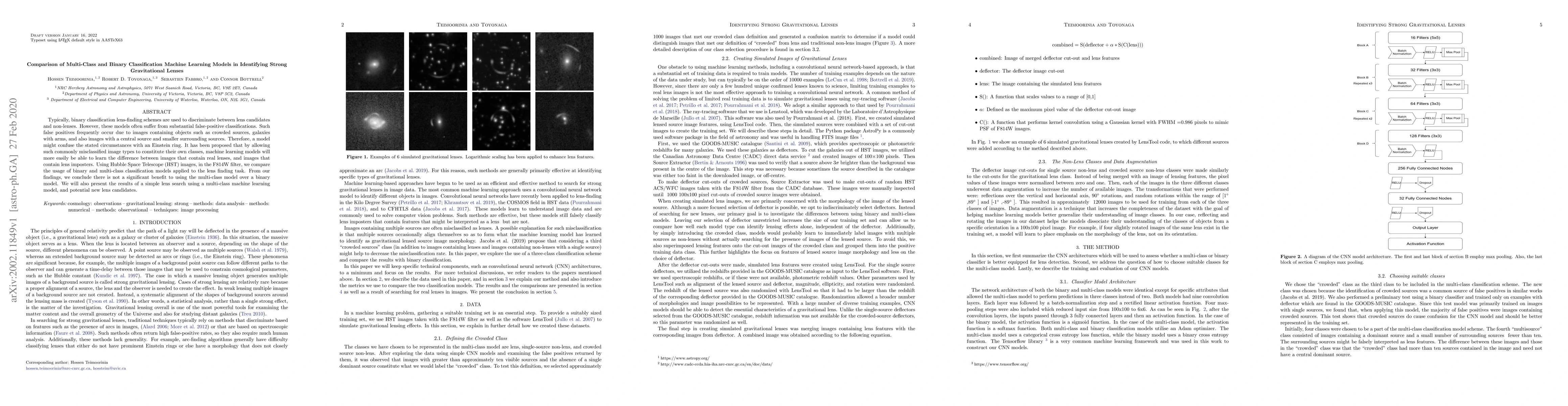 This study compares binary and multi-class machine learning models for identifying strong gravitational lenses using Hubble Space Telescope images. Despite the potential of multi-class models to reduce false positives, the research finds no significant advantage over binary classification models.
