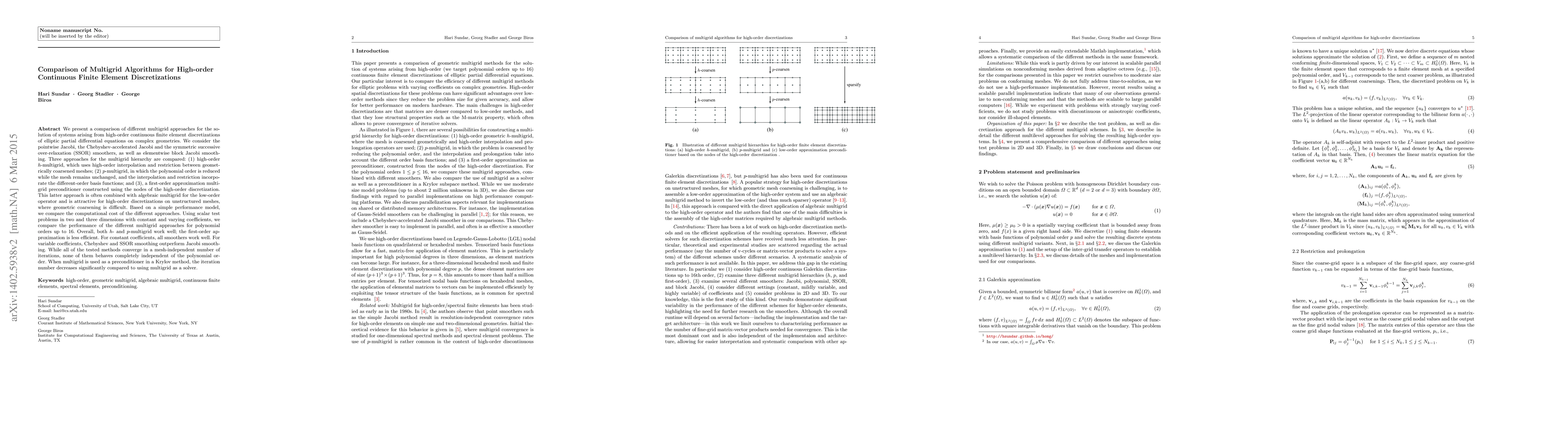 This paper compares various multigrid algorithms for high-order continuous finite element discretizations of elliptic PDEs, focusing on different smoothers and multigrid hierarchies. The results show that $h$- and $p$-multigrid methods perform well, while the first-order approximation is less efficient, especially for problems with variable coefficients.