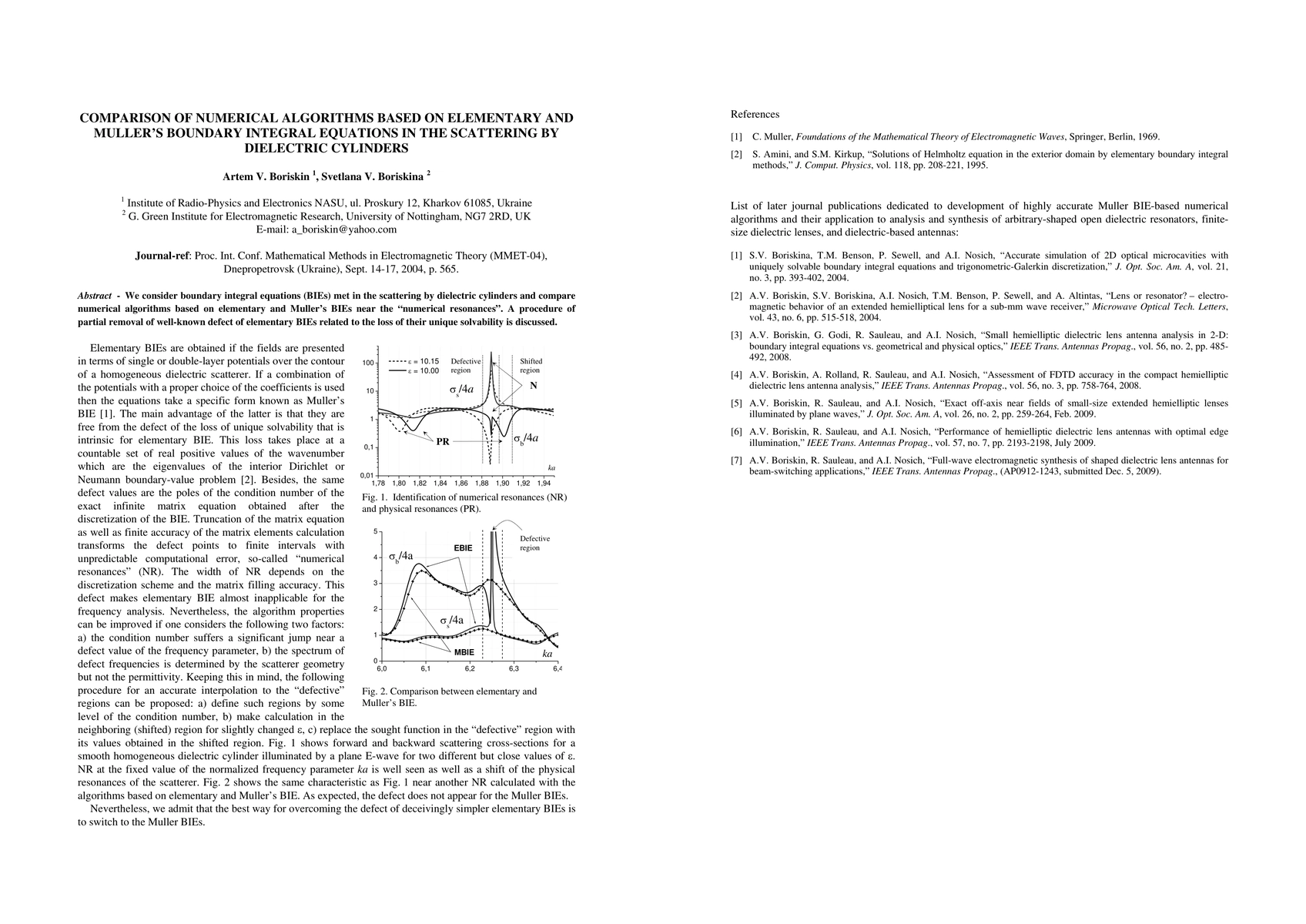 We consider boundary integral equations (BIEs) met in the scattering by dielectric cylinders and compare numerical algorithms based on elementary and Muller's BIEs near the "numerical resonances". A procedure of partial removal of well-known defect of elementary BIEs related to the loss of their unique solvability is discussed.