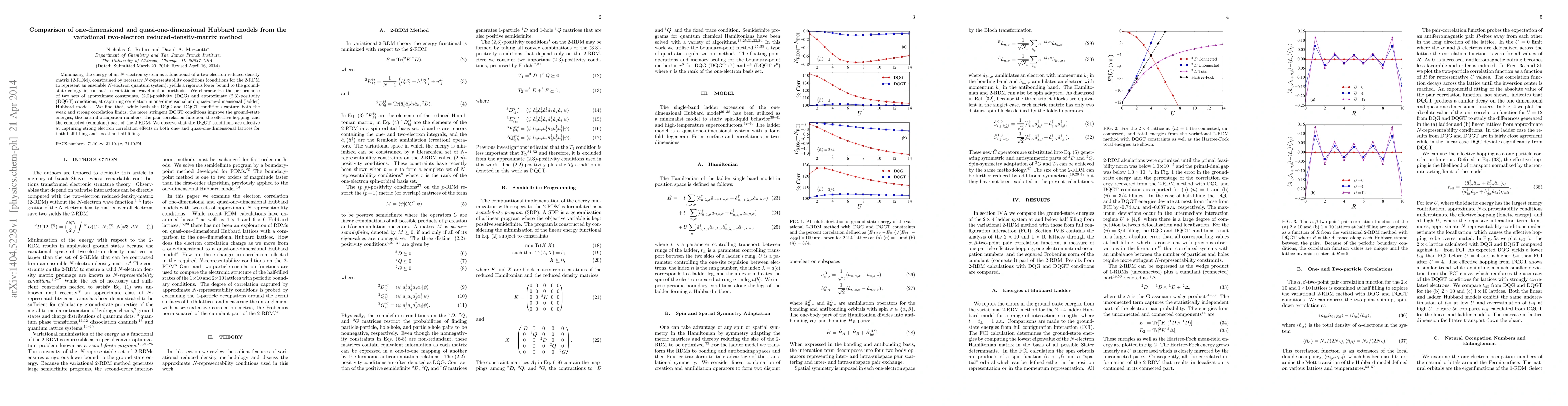 This paper compares the performance of two sets of variational constraints, DQG and DQGT, in capturing electron correlations in one-dimensional and quasi-one-dimensional Hubbard models using a two-electron reduced-density-matrix method. The DQGT conditions are found to provide a more accurate representation of strong correlation effects, improving ground-state energies and various correlation measures.