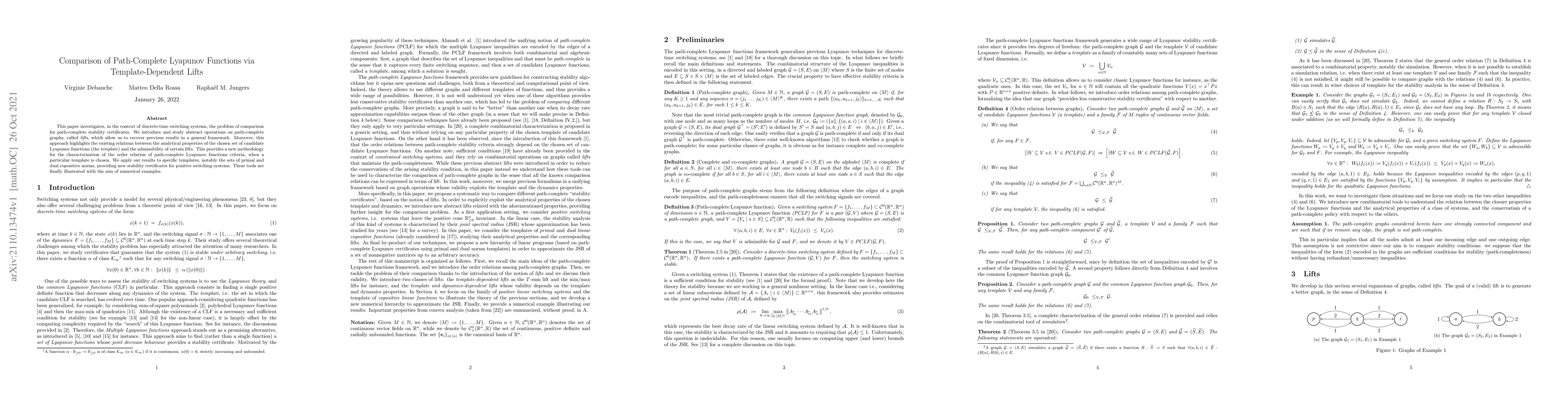 This paper investigates, in the context of discrete-time switching systems, the problem of comparison for path-complete stability certificates. We introduce and study abstract operations on path-complete graphs, called lifts, which allow us to recover previous results in a general framework. Moreover, this approach highlights the existing relations between the analytical properties of the chosen set of candidate Lyapunov functions (the template) and the admissibility of certain lifts. This provides a new methodology for the characterization of the order relation of path-complete Lyapunov functions criteria, when a particular template is chosen. We apply our results to specific templates, notably the sets of primal and dual copositive norms, providing new stability certificates for positive switching systems. These tools are finally illustrated with the aim of numerical examples.