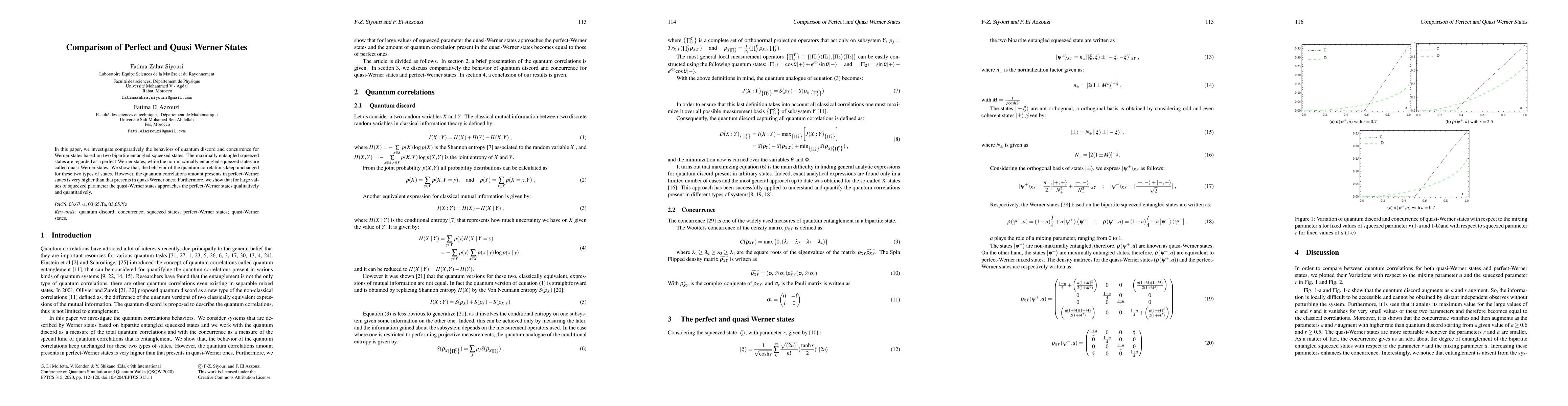 This paper compares the quantum correlations in perfect and quasi Werner states, showing that while both types exhibit similar behaviors, perfect-Werner states possess significantly higher quantum correlations. For large squeezed parameters, quasi-Werner states tend to approach the characteristics of perfect-Werner states.