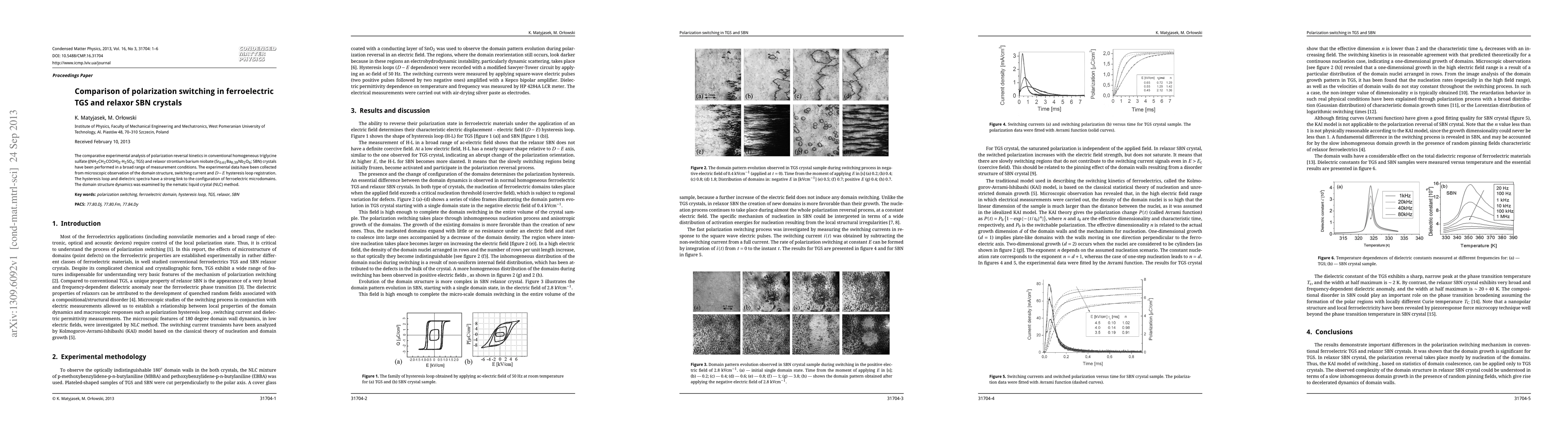 This study compares the polarization switching kinetics in ferroelectric TGS and relaxor SBN crystals, analyzing domain structure dynamics, switching currents, and D-E hysteresis loops. The findings reveal significant differences in the ferroelectric microdomain configurations between the two materials.