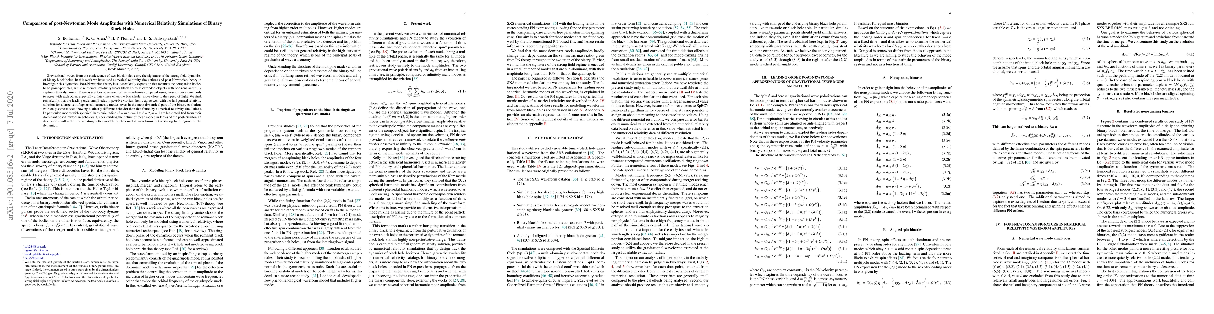 This paper compares post-Newtonian mode amplitudes with numerical relativity simulations for binary black hole coalescence, finding that leading order amplitudes agree well despite the different treatment of black holes. Some modes, particularly those with specific spherical harmonic indices, show distinct deviations, highlighting the need for improved models in the strong field regime.