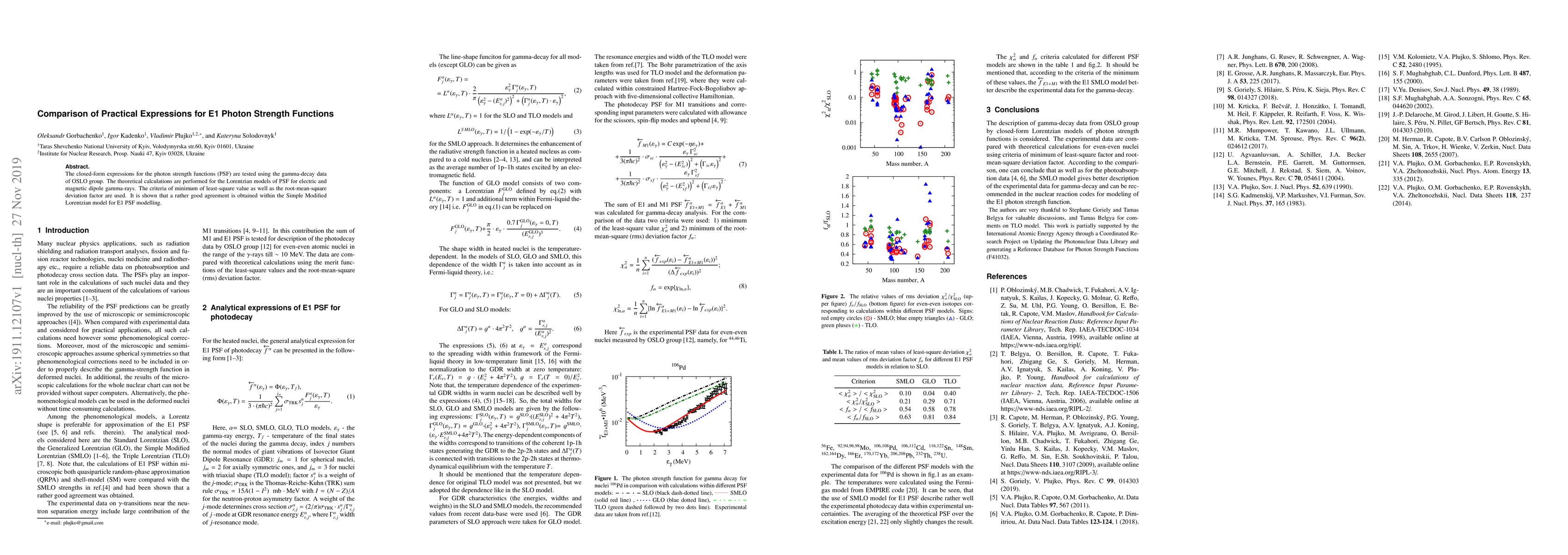 This research compares practical expressions for E1 photon strength functions, finding a good agreement with experimental data using the Simple Modified Lorentzian model for E1 PSF modeling. The study employs Lorentzian models and statistical criteria for validation.
