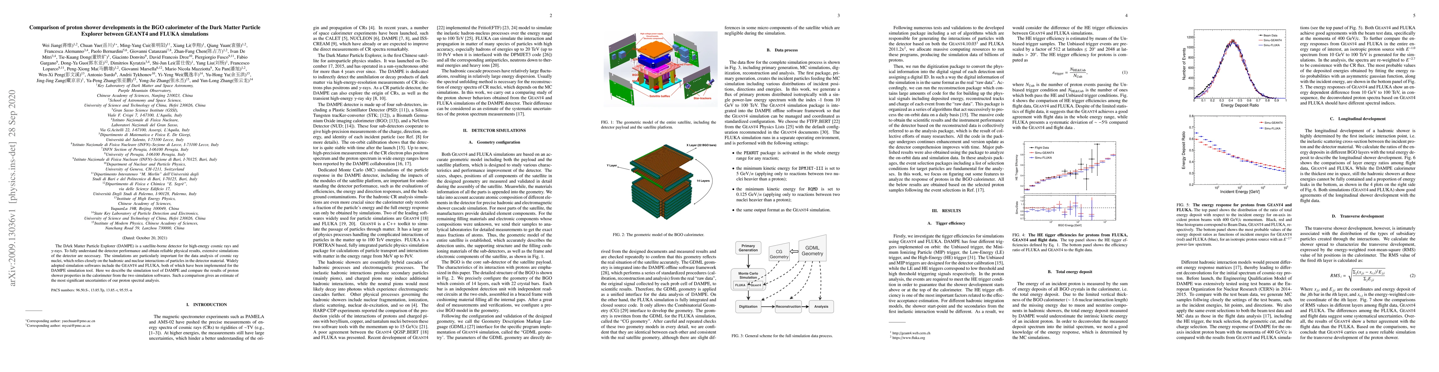 This paper compares proton shower developments in the BGO calorimeter of DAMPE using GEANT4 and FLUKA simulations, aiming to assess the uncertainties in proton spectral analysis and understand the detector's performance. The results highlight differences between the two simulation tools, crucial for accurate cosmic ray data analysis.