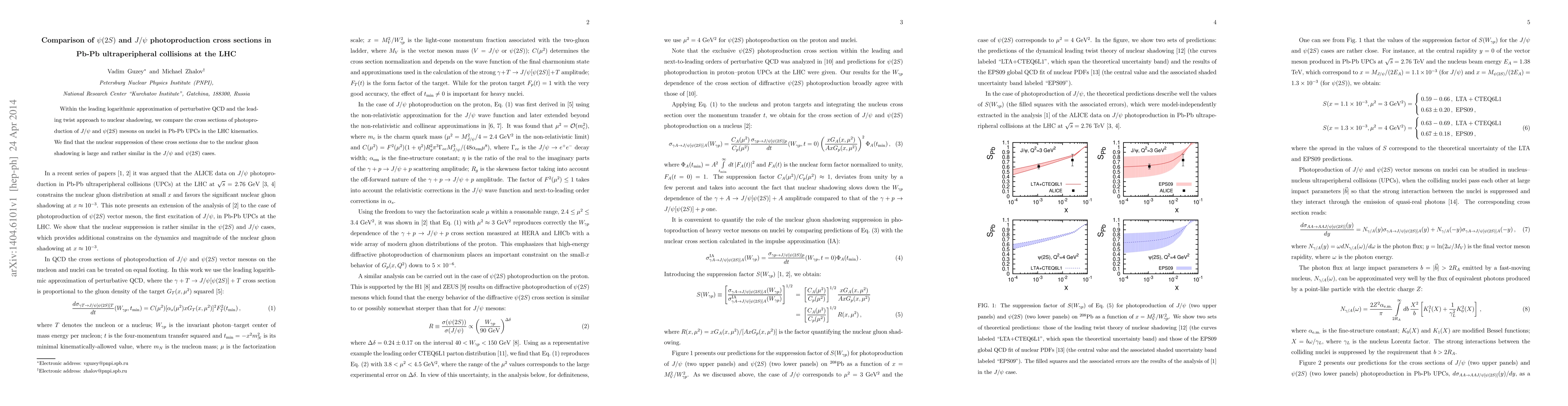 Within the leading logarithmic approximation of perturbative QCD and the leading twist approach to nuclear shadowing, we compare the cross sections of photoproduction of $J/\psi$ and $\psi(2S)$ mesons on nuclei in Pb-Pb UPCs in the LHC kinematics. We find that the nuclear suppression of these cross sections due to the nuclear gluon shadowing is large and rather similar in the $J/\psi$ and $\psi(2S)$ cases.