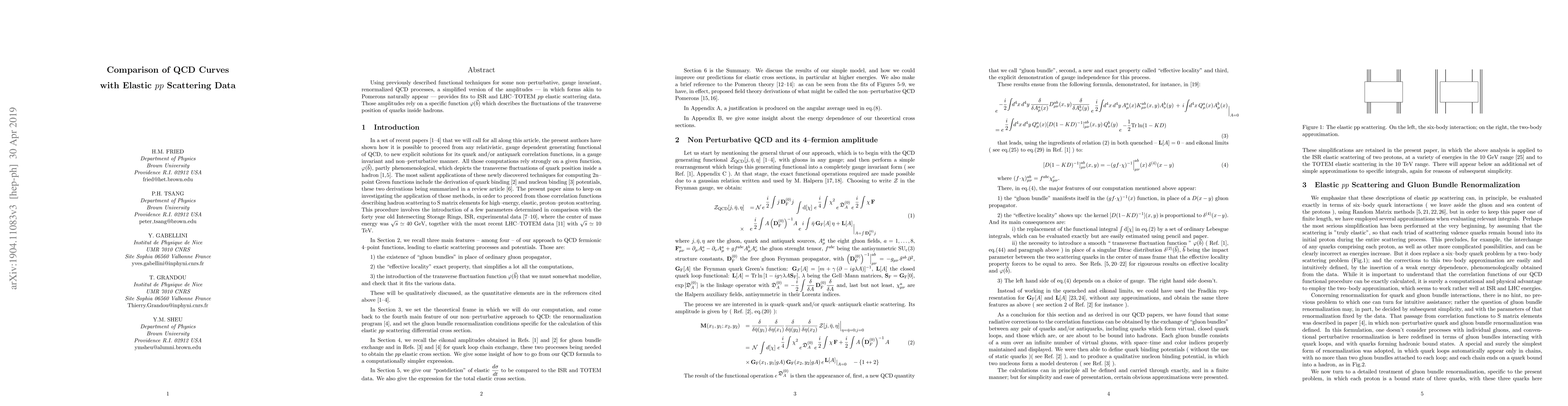 Using previously described functional techniques for some non--perturbative, gauge invariant, renormalized QCD processes, a simplified version of the amplitudes --- in which forms akin to Pomerons naturally appear --- provides fits to ISR and LHC--TOTEM $pp$ elastic scattering data. Those amplitudes rely on a specific function $\varphi (\vec b)$ which describes the fluctuations of the transverse position of quarks inside hadrons.