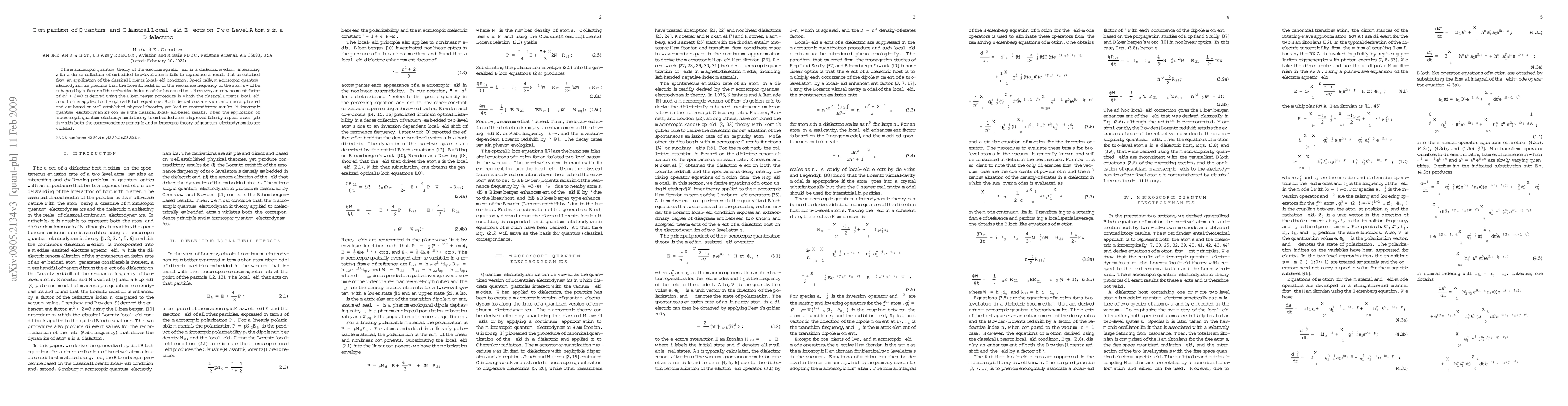 This paper compares quantum and classical local-field effects on two-level atoms in a dielectric medium, revealing that macroscopic quantum electrodynamics fails to match classical predictions, specifically the Lorentz redshift enhancement factor, which is contradicted by the classical Bloembergen procedure. Microscopic quantum electrodynamics aligns with classical results, invalidating macroscopic quantum electrodynamics in this context.