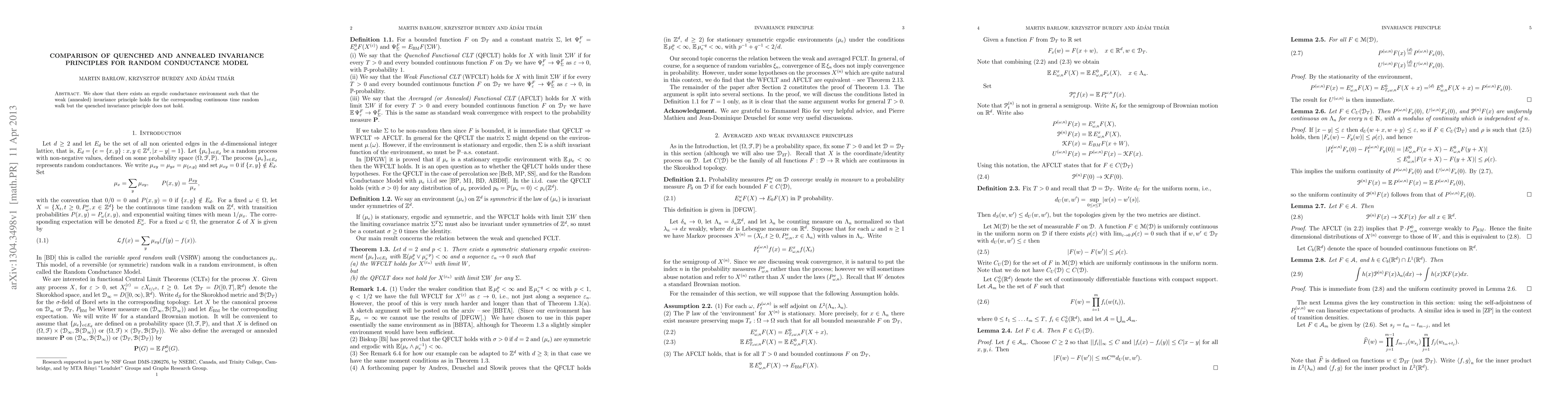 Summary: This paper demonstrates an ergodic conductance environment where the annealed invariance principle applies to the continuous time random walk but the quenched invariance principle fails, highlighting differences in these two statistical behaviors.