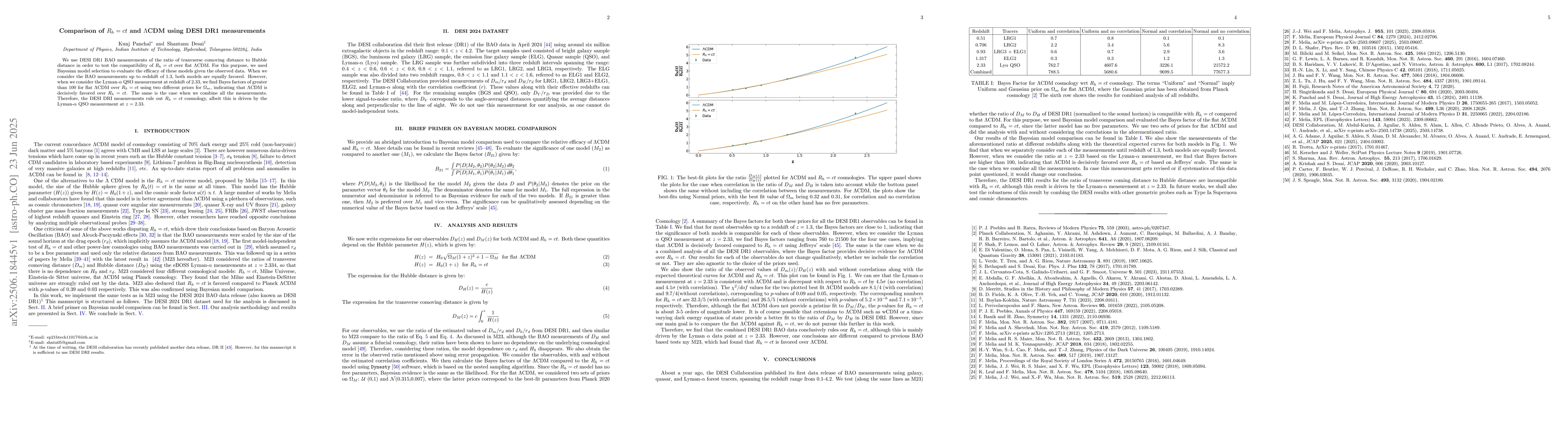 We use DESI DR1 BAO measurements of the ratio of tranvserse comoving distance to Hubble distance in order to test the compatibility of $R_h=ct$ over flat $\Lambda$CDM. For this purpose, we used Bayesian model selection to evaluate the efficacy of these models given the observed data. When we consider the BAO measurements up to redshift of 1.3, both models are equally favored. However, when we consider the Lyman-$\alpha$ QSO measurement at redshift of 2.33, we find Bayes factors of greater than 100 for flat $\Lambda$CDM over $R_h=ct$ using two different priors for $\Omega_m$, indicating that $\Lambda$CDM is decisively favored over $R_h=ct$. The same is the case when we combine all the measurements. Therefore, the DESI DRI measurements rule out $R_h=ct$ cosmology, albeit this is driven by the Lyman-$\alpha$ QSO measurement at $z=2.33$.