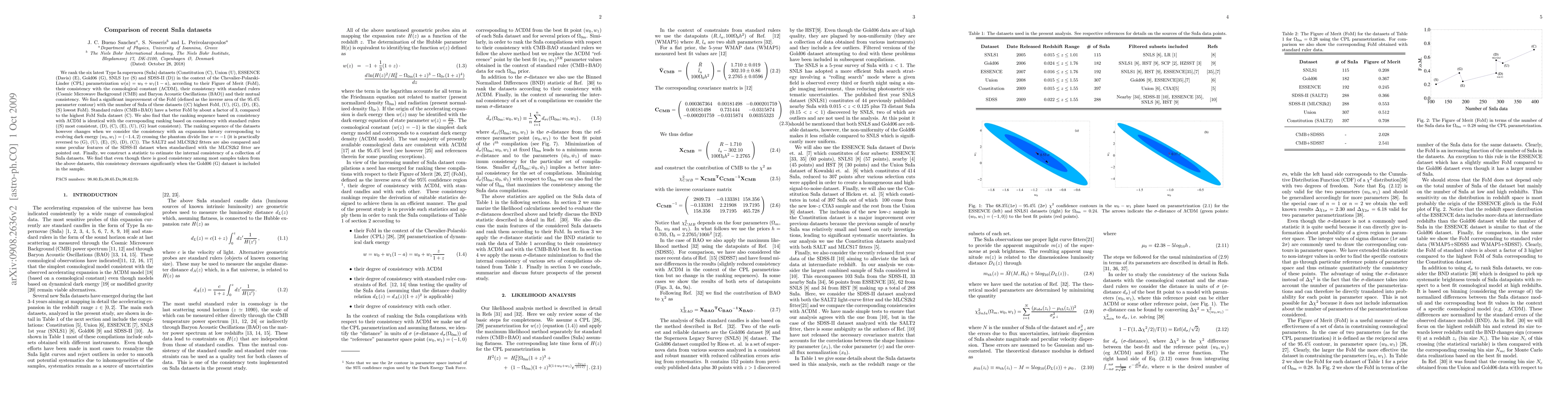 This paper ranks six recent Type Ia supernova datasets based on their Figure of Merit, consistency with $\Lambda$CDM, and alignment with standard rulers (CMB+BAO). The Constitution dataset shows the highest Figure of Merit, but standard rulers have a better Figure of Merit by a factor of three. The ranking reverses when considering dark energy crossing the phantom divide line. The SALT2 and MLCS2k2 fitters are compared, and internal consistency among the datasets decreases notably when including the Gold06 dataset.