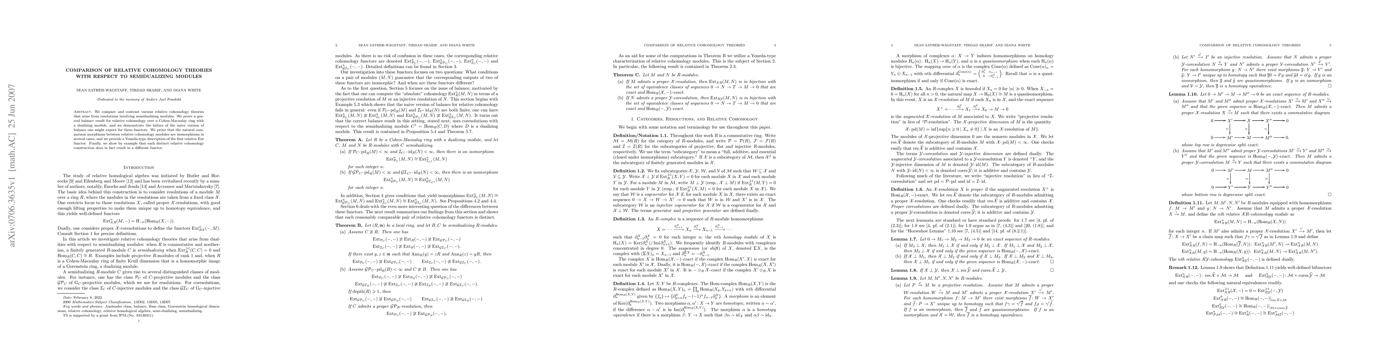 This paper compares various relative cohomology theories derived from semidualizing modules, proving a balance result for relative cohomology over Cohen-Macaulay rings, while highlighting the failure of naive balance expectations. It also shows that natural comparison morphisms are isomorphisms in specific cases and provides a Yoneda-type description of the first relative Ext functor, concluding with examples demonstrating distinct relative cohomology functors.