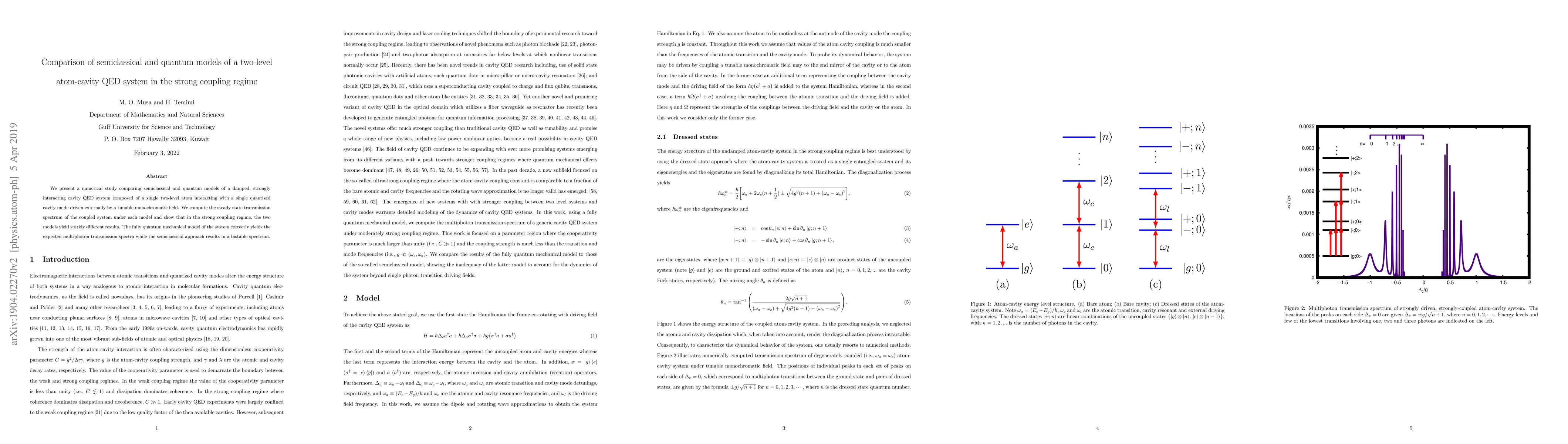 This paper compares semiclassical and quantum models of a strongly coupled atom-cavity QED system, finding that the quantum model accurately predicts multiphoton transmission spectra, while the semiclassical approach yields a bistable spectrum.