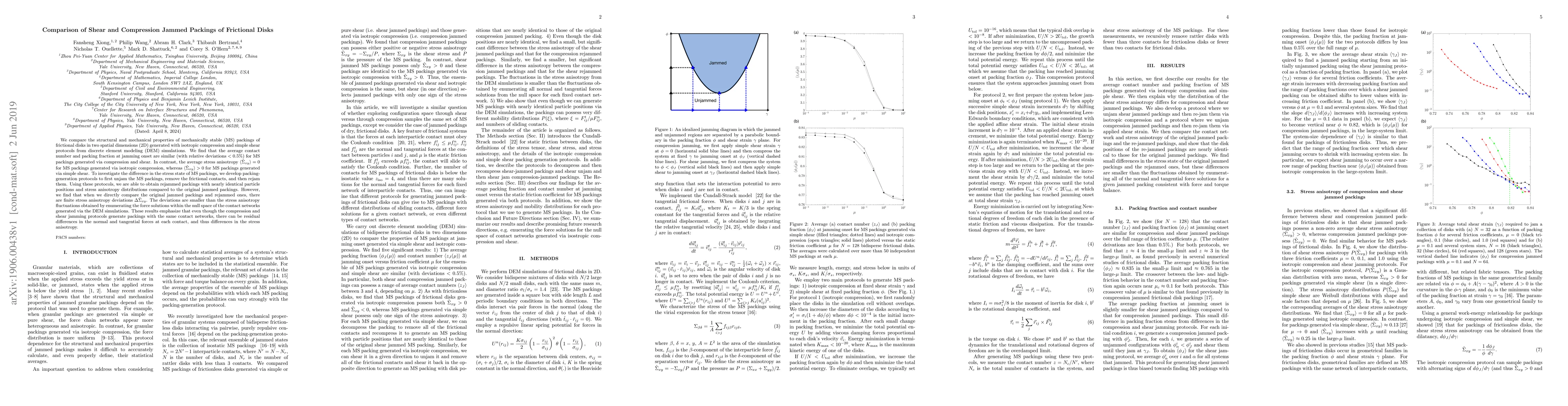 This paper compares the structural and mechanical properties of jammed packings of frictional disks generated via isotropic compression and simple shear. It finds similar contact numbers and packing fractions but different stress anisotropies, highlighting residual differences in forces despite identical contact networks.