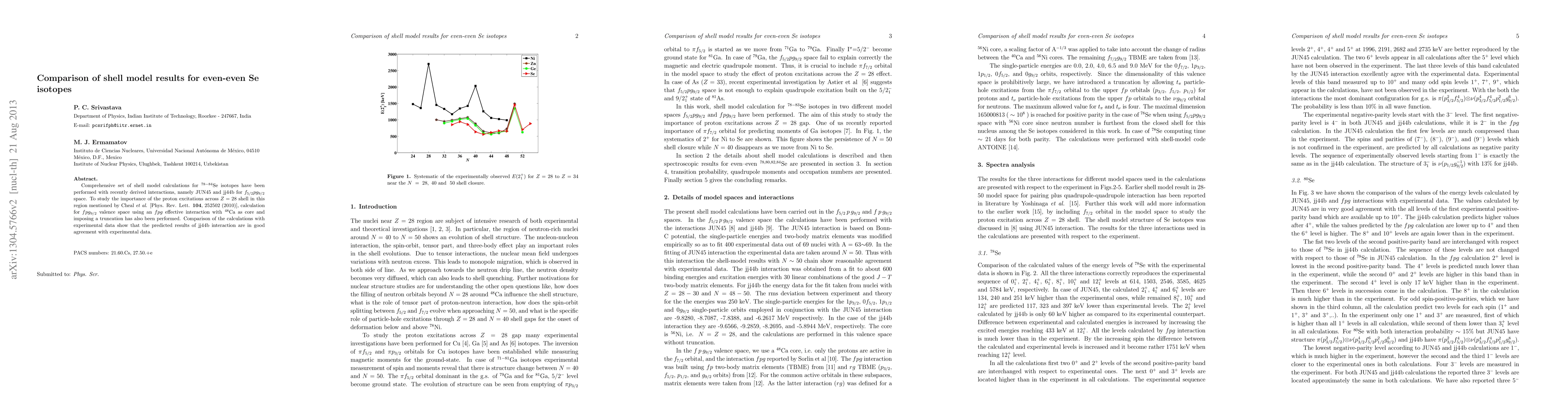 Researchers used shell model calculations to predict the properties of Se isotopes and found good agreement with experimental data when using a specific interaction, jj44b, in their models.