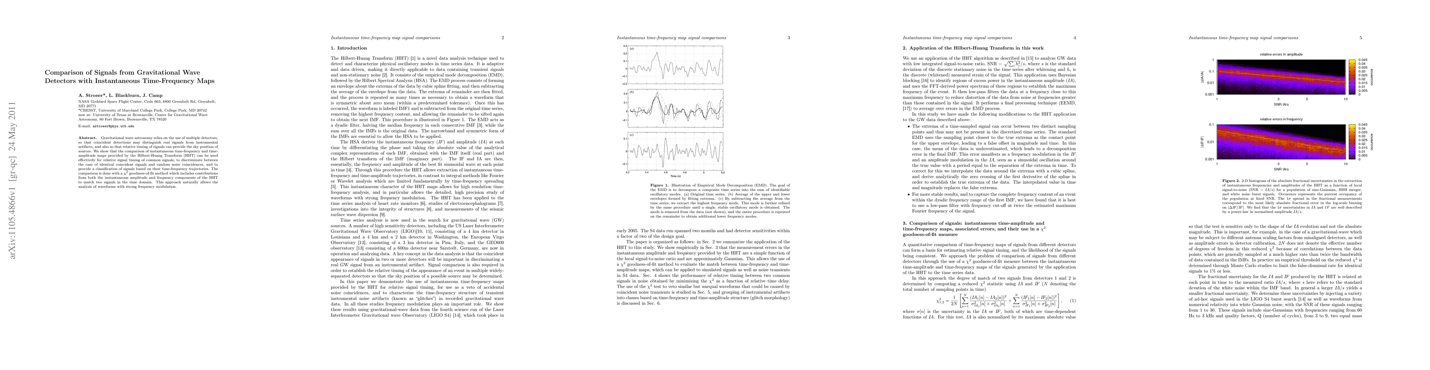 This paper proposes the use of Hilbert-Huang Transform (HHT) time-frequency maps for comparing signals from gravitational wave detectors, employing a chi-square method to distinguish between real coincident signals and noise, and classify signals based on their time-frequency characteristics. The method effectively analyzes waveforms with significant frequency modulation.
