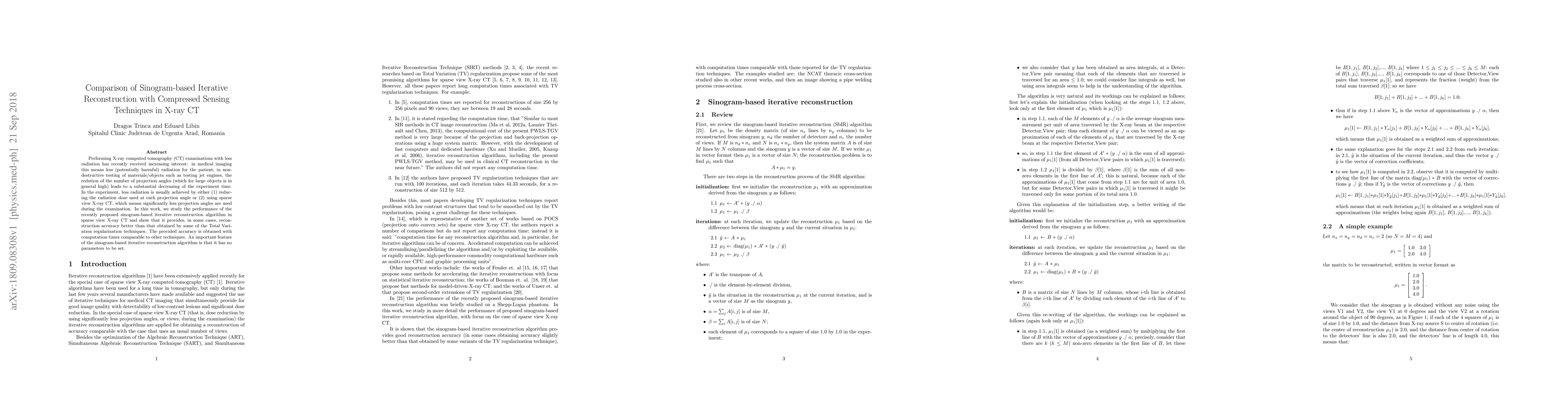 This paper compares sinogram-based iterative reconstruction with compressed sensing techniques for sparse view X-ray CT, demonstrating that the former can achieve higher reconstruction accuracy than Total Variation regularization methods, with comparable computation times and no need for parameter tuning.