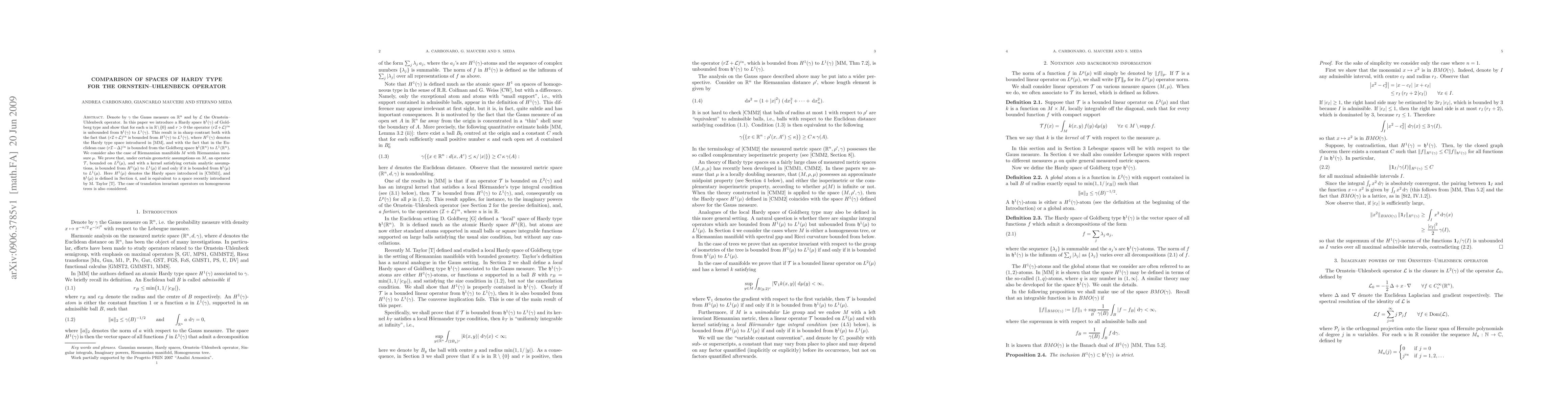 This paper compares two types of Hardy spaces for the Ornstein-Uhlenbeck operator on R^n and Riemannian manifolds, finding that one type is unbounded while the other is bounded under certain conditions.