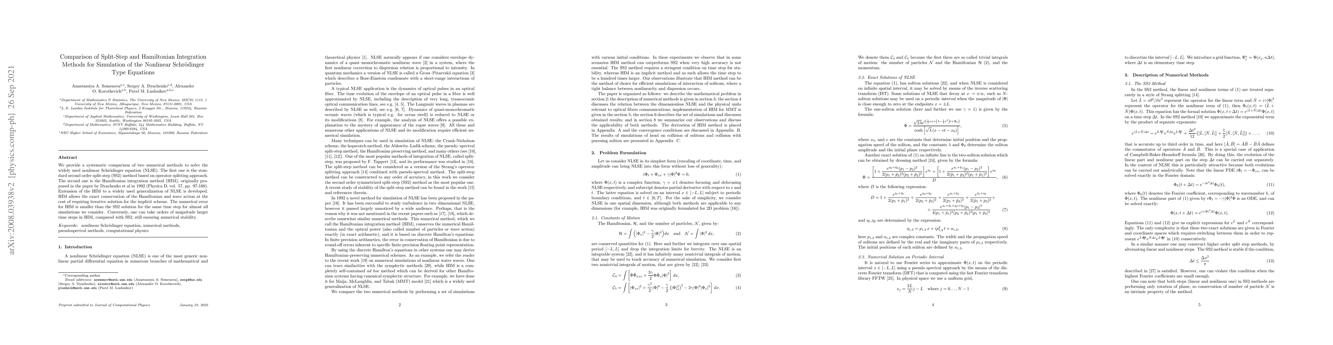 This paper compares the split-step second-order (SS2) method and the Hamiltonian integration method (HIM) for solving the nonlinear Schrödinger equation. The HIM method exhibits smaller numerical errors and allows significantly larger time steps while maintaining stability compared to the SS2 method.