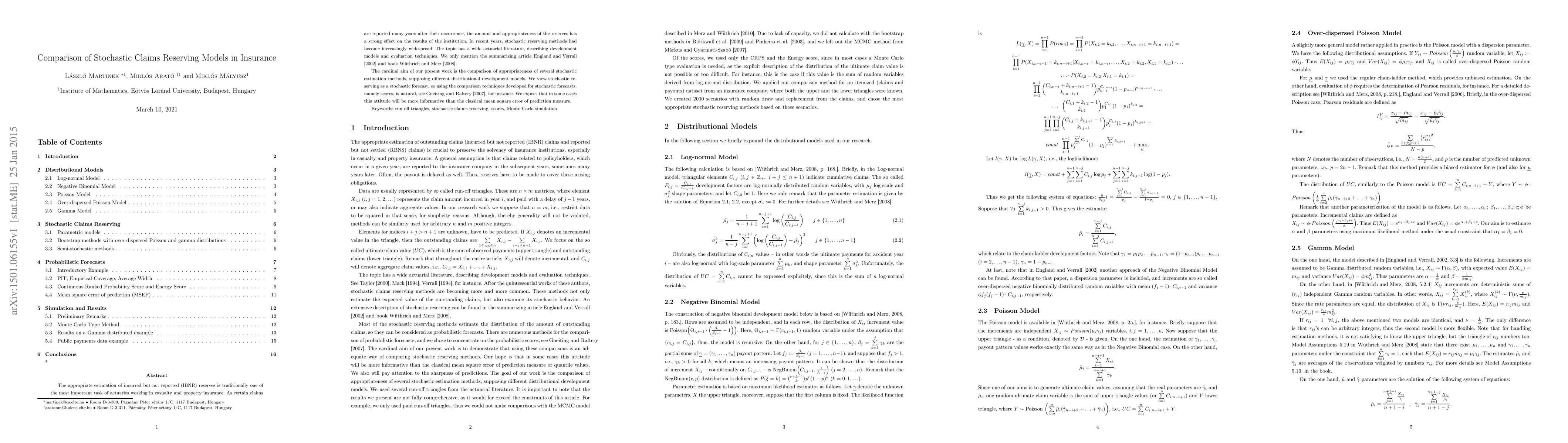 This paper compares various stochastic models for estimating incurred but not reported (IBNR) reserves in casualty and property insurance, employing forecast comparison techniques to evaluate their appropriateness. The study aims to determine which models provide the most accurate predictions, potentially offering more informative insights than traditional mean square error measures.