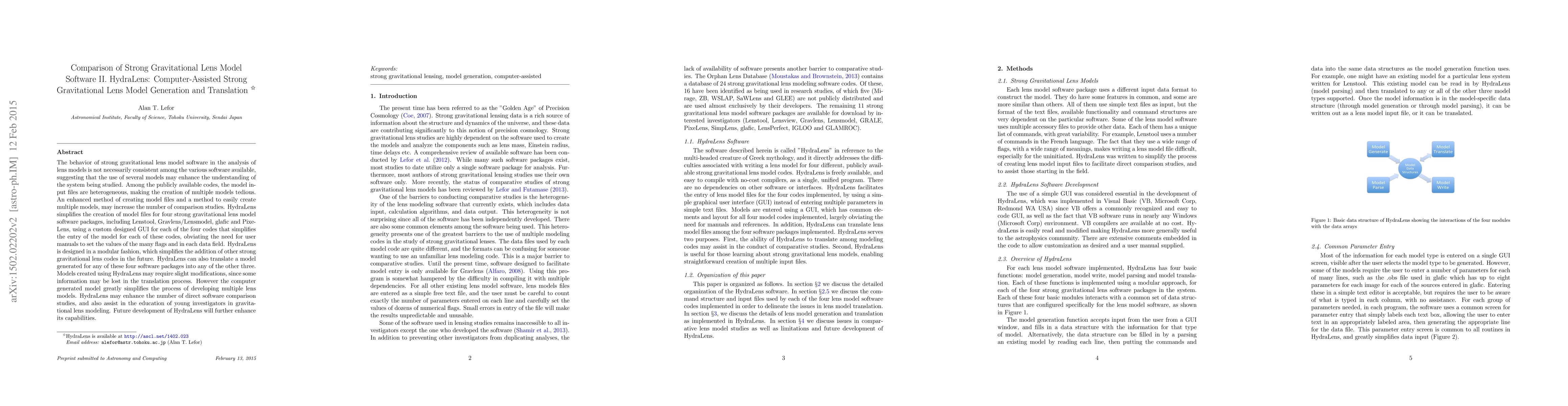 HydraLens is a new software tool designed to simplify the creation and translation of strong gravitational lens models across four popular lens modeling packages. It aims to enhance comparative studies and educational efforts in gravitational lens modeling by reducing the complexity of model file generation and inter-software translation.