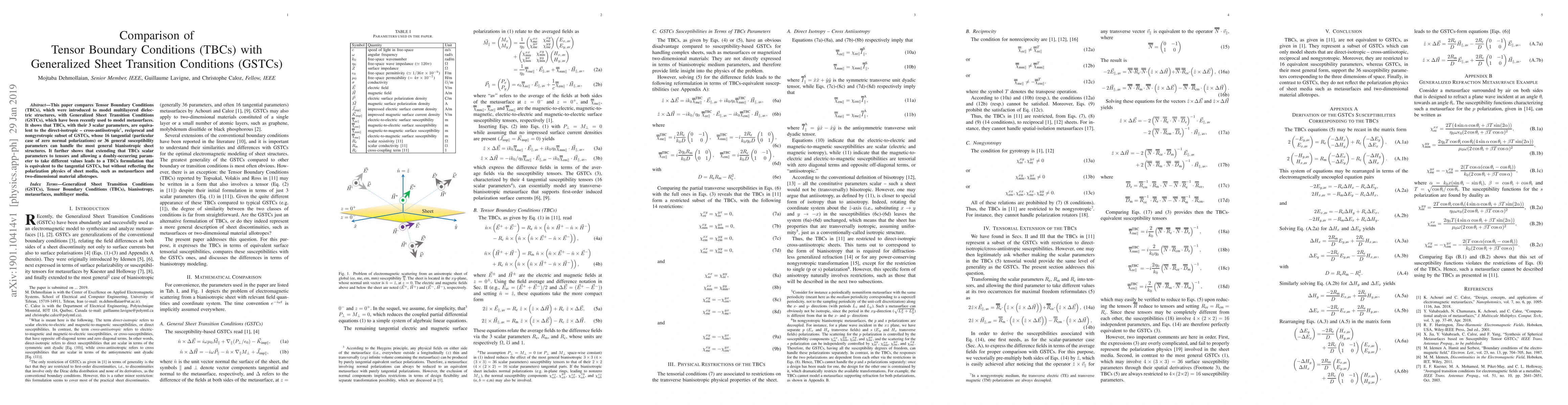 This paper compares Tensor Boundary Conditions (TBCs), which were introduced to model multilayered dielectric structures, with Generalized Sheet Transition Conditions (GSTCs), which have been recently used to model metasurfaces. It shows that TBCs, with their 3 scalar parameters, are equivalent to the direct-isotropic -- cross-antiisotropic, reciprocal and nongyrotropic subset of GSTCs, whose 16 tangential (particular case of zero normal polarizations) or 36 general susceptibility parameters can handle the most general bianisotropic sheet structures. It further shows that extending that TBCs scalar parameters to tensors and allowing a doubly-occurring parameter to take different values leads to a TBCs formulation that is equivalent to the tangential GSTCs, but without reflecting the polarization physics of sheet media, such as metasurfaces and two-dimensional material allotropes.