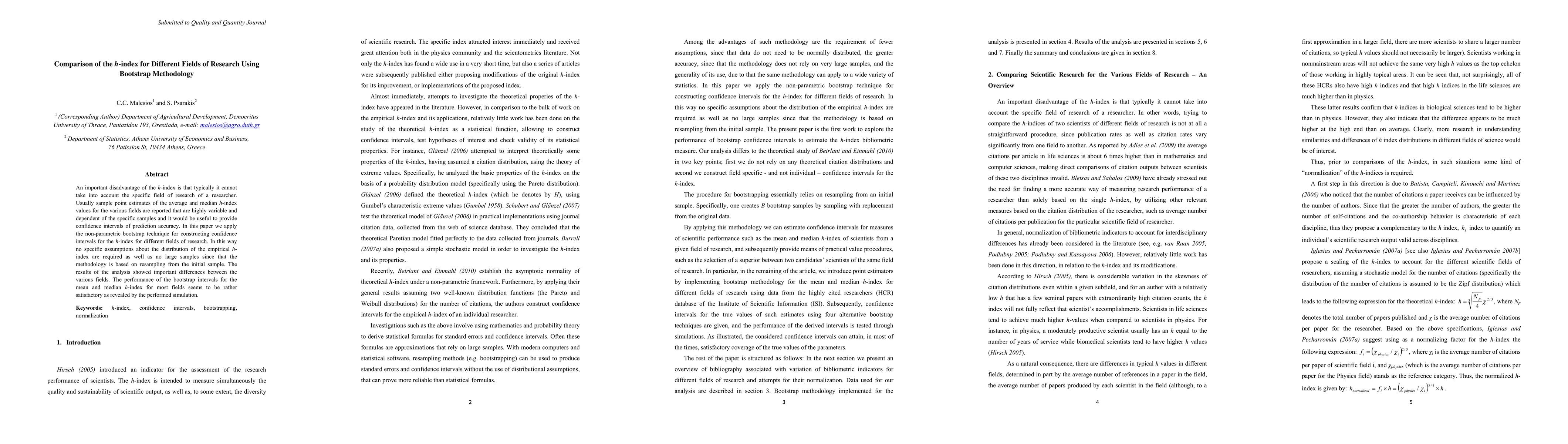 This paper uses bootstrap methodology to estimate confidence intervals for h-index values in different fields of research, revealing important differences between fields and satisfactory performance of the method.