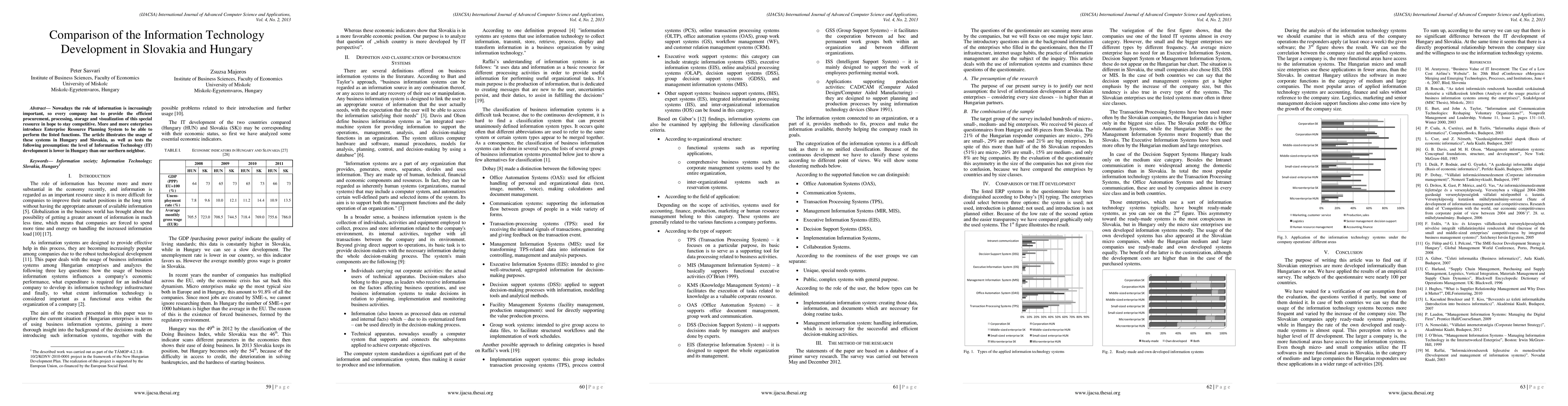 Nowadays the role of information is increasingly important, so every company has to provide the efficient procurement, processing, storage and visualization of this special resource in hope to stay competitive. More and more enterprises introduce Enterprise Resource Planning System to be able to perform the listed functions. The article illustrates the usage of these systems in Hungary and Slovakia, as well as tests the following presumption: the level of Information Technology (IT) development is lower in Hungary than our northern neighbor.