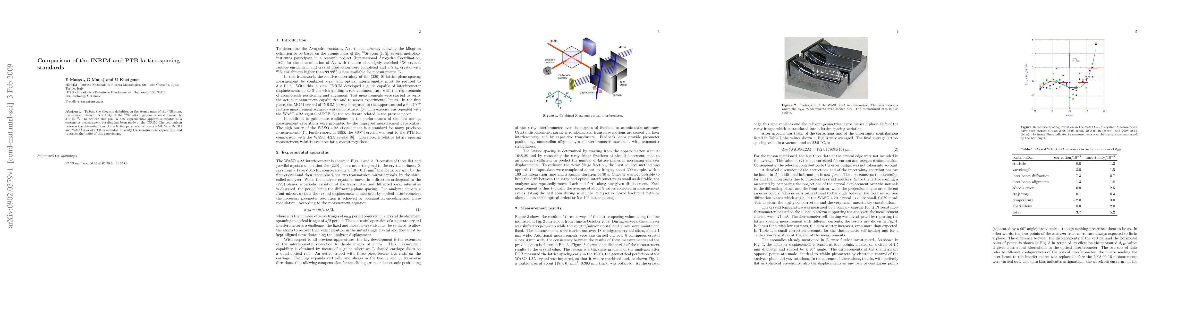 This paper compares the INRIM and PTB lattice-spacing standards to improve the relative uncertainty of the silicon 28 lattice parameter to 3E-9 for redefining the kilogram. The study assesses the measurement capabilities of a new experimental apparatus at INRIM by comparing the lattice parameters of crystals MO*4 and WASO4.2a.