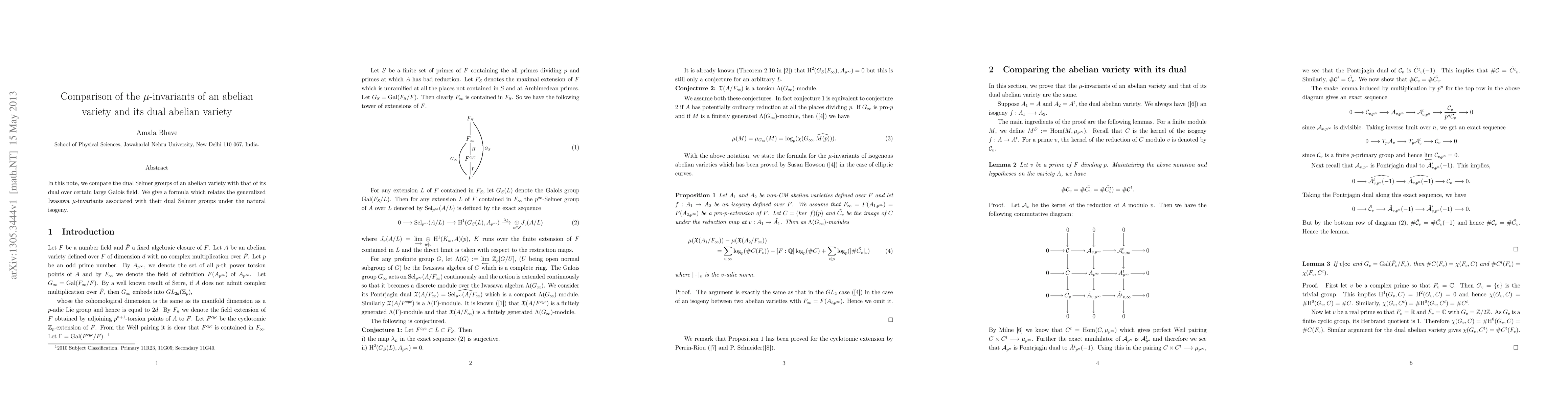 In this note, we compare the dual Selmer groups of an abelian variety with that of its dual over certain large Galois field. We give formula which relates the generalized Iwasawa $\mu$-invariants associated with their dual Selmer groups under the natural isogeny.