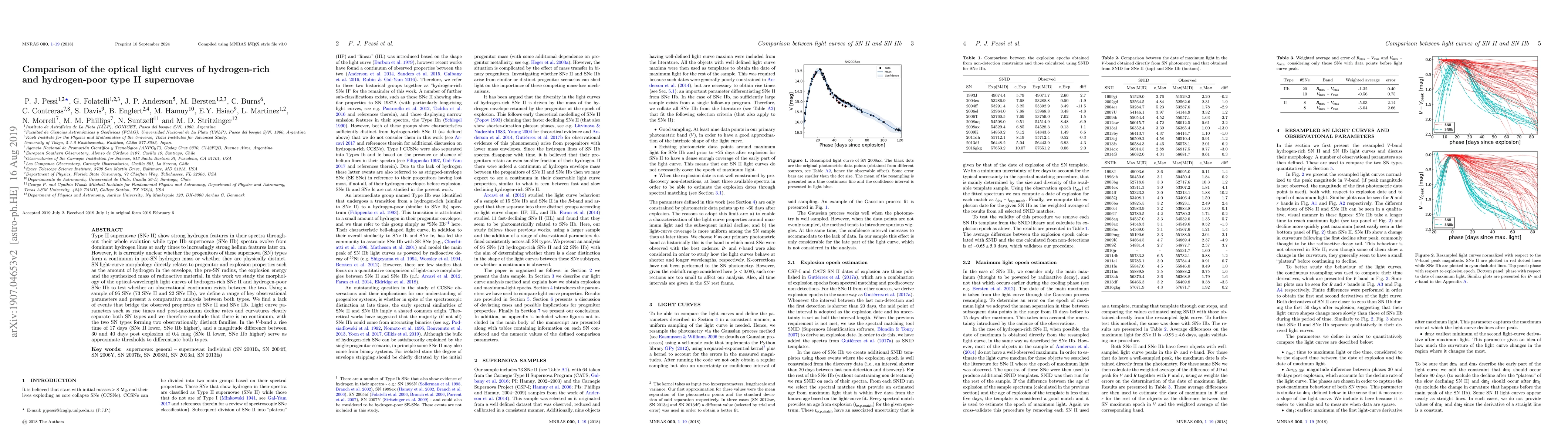A study of 95 supernovae found that type II and type IIb supernovae have distinct optical light curve morphologies, suggesting they are two observationally separate families rather than a continuum of hydrogen-rich progenitors.