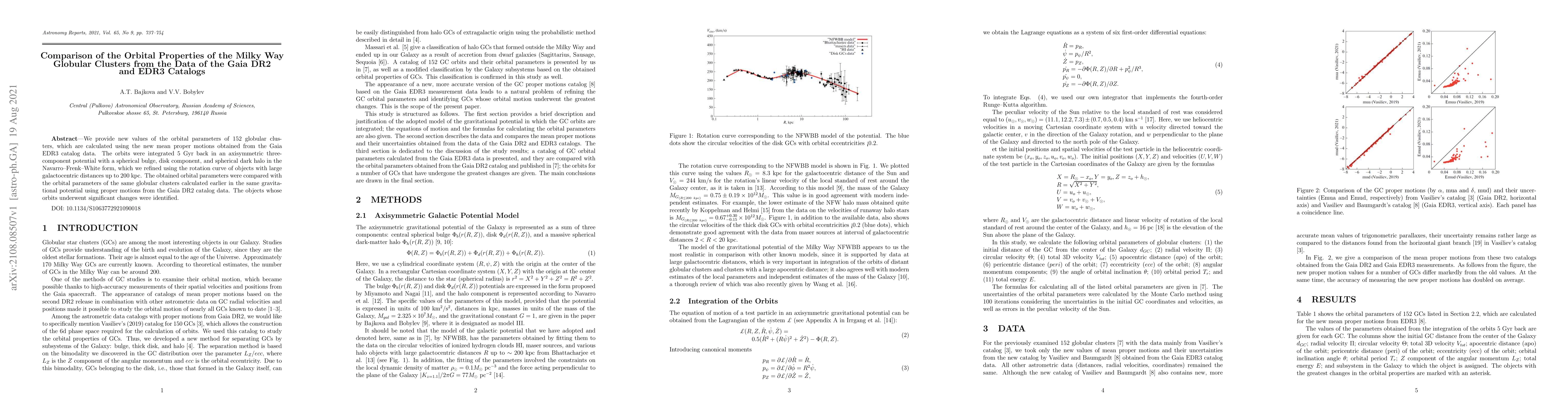 We provide new values of the orbital parameters of 152 globular clusters, which are calculated using the new mean proper motions obtained from the Gaia EDR3 catalog data. The orbits were integrated 5 Gyr back in an axisymmetric three-component potential with a spherical bulge, disk component, and spherical dark halo in the Navarro-Frenk-White form, which we refined using the rotation curve of objects with large galactocentric distances up to 200 kpc. The obtained orbital parameters were compared with the orbital parameters of the same globular clusters calculated earlier in the same gravitational potential using proper motions from the Gaia DR2 catalog data. The objects whose orbits underwent significant changes were identified.