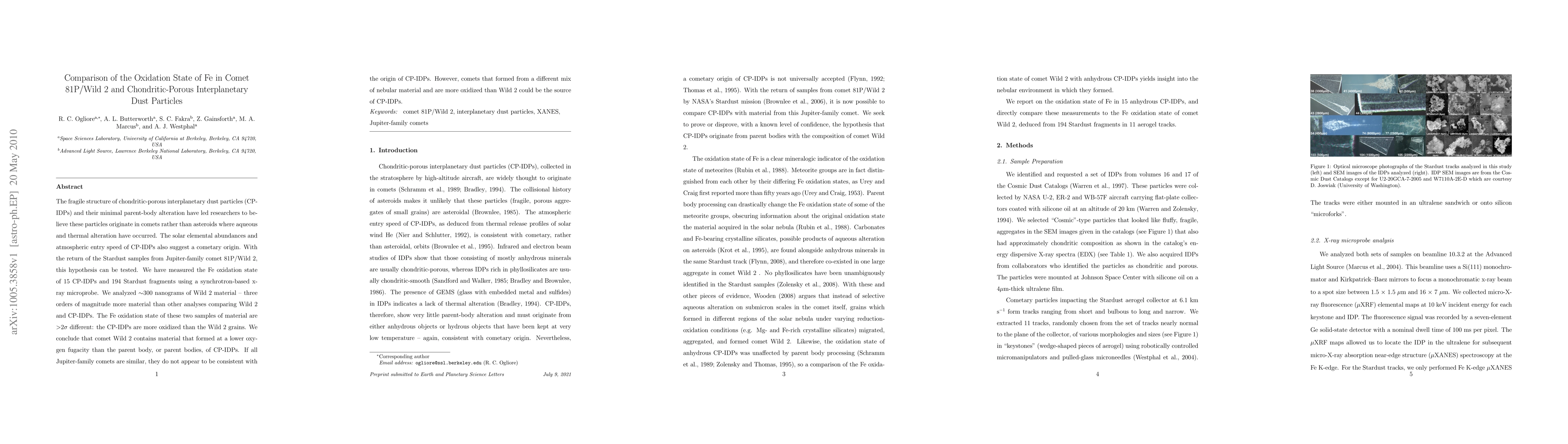 The fragile structure of chondritic-porous interplanetary dust particles (CP- IDPs) and their minimal parent-body alteration have led researchers to believe these particles originate in comets rather than asteroids where aqueous and thermal alteration have occurred. The solar elemental abundances and atmospheric entry speed of CP-IDPs also suggest a cometary origin. With the return of the Stardust samples from Jupiter-family comet 81P/Wild 2, this hypothesis can be tested. We have measured the Fe oxidation state of 15 CP-IDPs and 194 Stardust fragments using a synchrotron-based x-ray microprobe. We analyzed ~300 nanograms of Wild 2 material - three orders of magnitude more material than other analyses comparing Wild 2 and CP-IDPs. The Fe oxidation state of these two samples of material are >2{\sigma} different: the CP-IDPs are more oxidized than the Wild 2 grains. We conclude that comet Wild 2 contains material that formed at a lower oxygen fugacity than the parent body, or parent bodies, of CP-IDPs. If all Jupiter-family comets are similar, they do not appear to be consistent with the origin of CP-IDPs. However, comets that formed from a different mix of nebular material and are more oxidized than Wild 2 could be the source of CP-IDPs.
