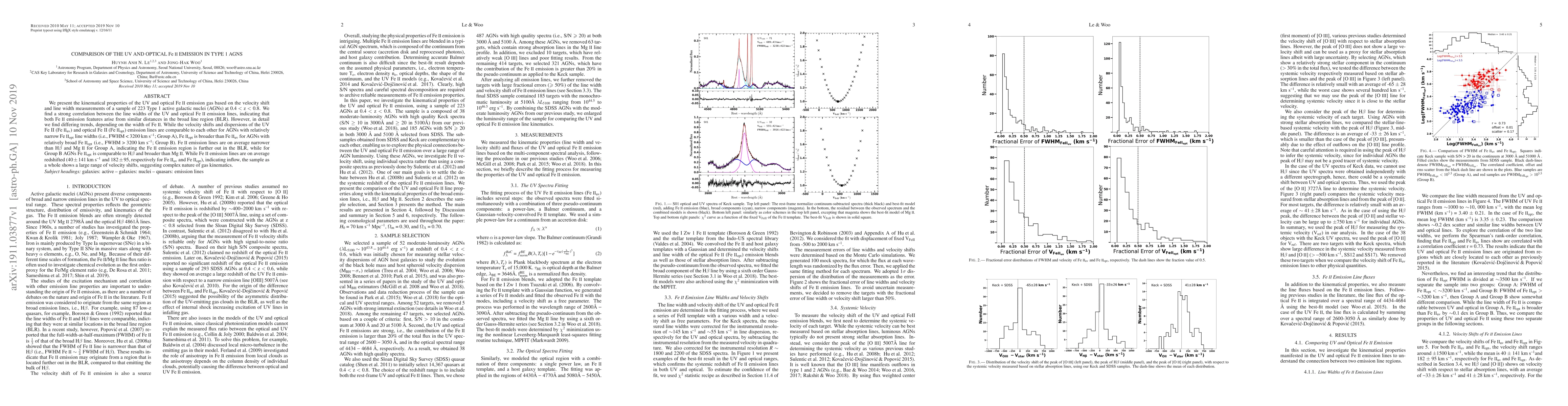 This study investigates the kinematic properties of UV and optical Fe II emission lines in 223 Type 1 AGNs, finding a strong correlation between their line widths suggesting similar origins in the broad line region. However, detailed differences emerge, with optical Fe II lines being broader than UV Fe II lines in AGNs with wider optical Fe II lines, indicating more complex gas kinematics.