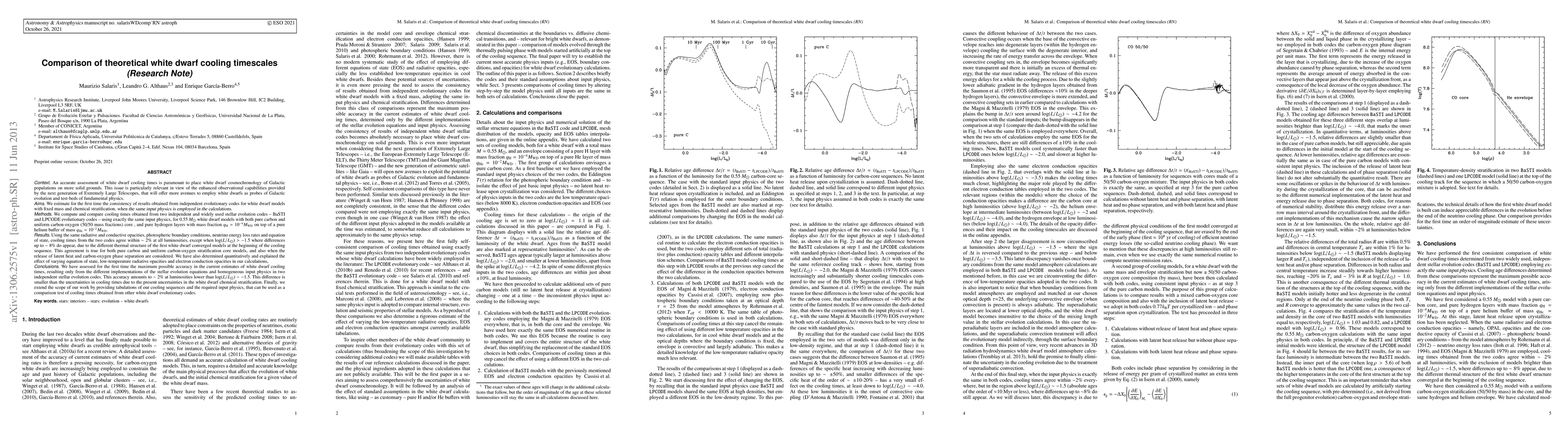 This paper compares the cooling timescales of white dwarfs from two independent evolutionary codes (BaSTI and LPCODE) under identical input physics, finding a 2% accuracy difference due to different implementations. It highlights the minor impact of this difference compared to uncertainties in chemical stratification, and provides detailed tables for further validation of other models.