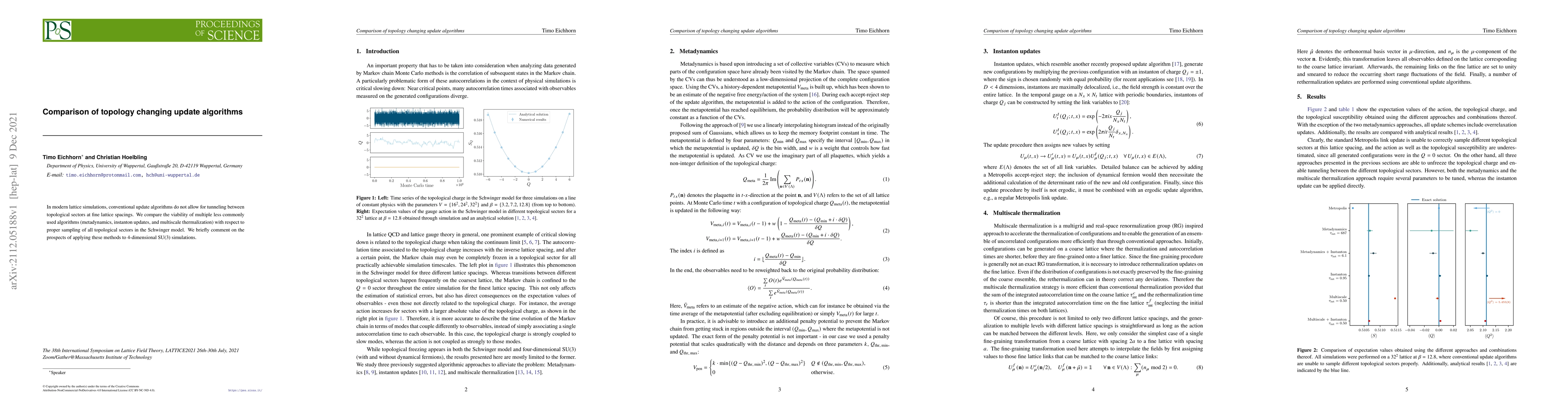 In modern lattice simulations, conventional update algorithms do not allow for tunneling between topological sectors at fine lattice spacings. We compare the viability of multiple less commonly used algorithms (metadynamics, instanton updates, and multiscale thermalization) with respect to proper sampling of all topological sectors in the Schwinger model. We briefly comment on the prospects of applying these methods to 4-dimensional SU(3) simulations.