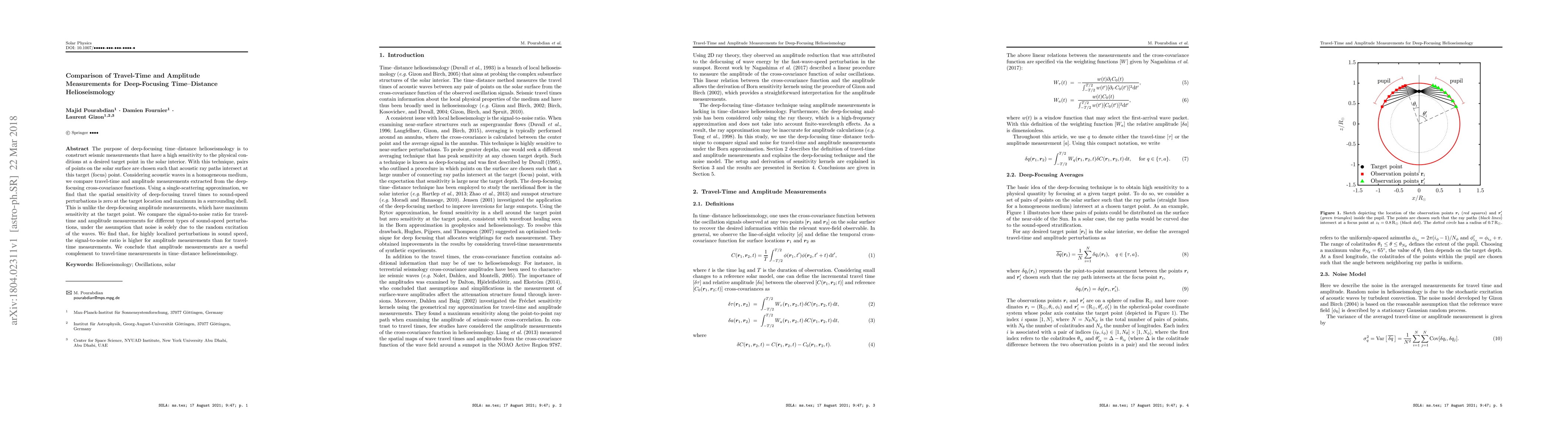 This paper compares travel-time and amplitude measurements in deep-focusing time-distance helioseismology, finding that while travel times have maximum sensitivity in surrounding shells, amplitudes are most sensitive at the target point. Amplitude measurements show a higher signal-to-noise ratio for localized sound-speed perturbations, suggesting they complement travel-time measurements.